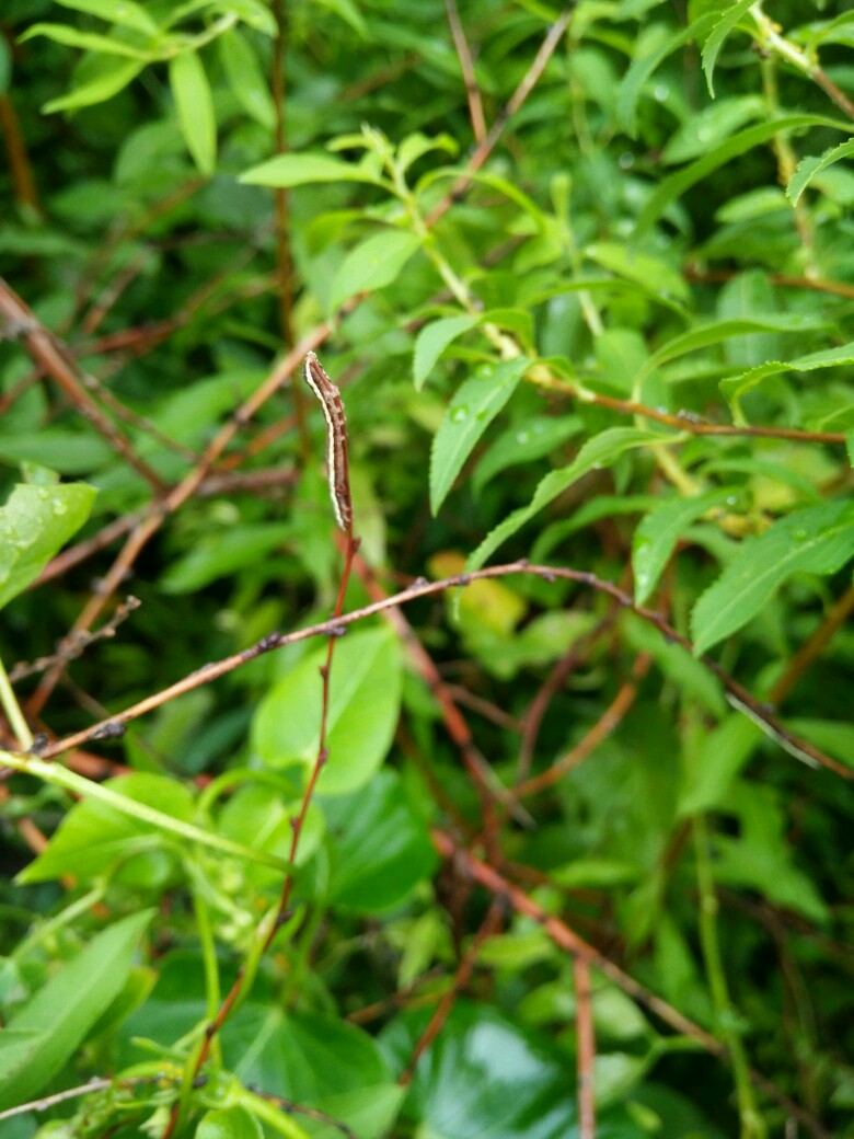 某蛾幼虫(像舟蛾?),会假死,从树枝上脱落。