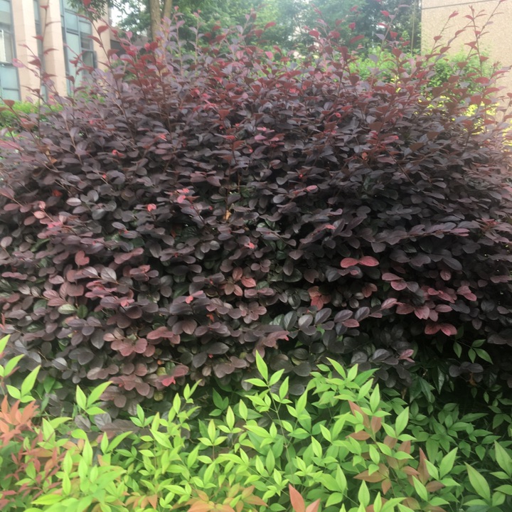 红花檵木(拉丁学名:Loropetalum chinense var.rubrum),又名:红继木、红梽木、红桎木、红檵花、红梽花、红桎花、红花继木,为金缕梅科、檵木属檵木的变种,常绿灌木或小乔木。树皮暗灰或浅灰褐色,多分枝。嫩枝红褐色,密被星状毛。叶革质互生,卵圆形或椭圆形,长2~5cm,先端短尖,基部圆而偏斜,不对称,两面均有星状毛,全缘,暗红色。花瓣4枚,紫红色线形长1~2cm,花3~8朵簇生于小枝端。蒴果褐色,近卵形。花期4~5月,花期长,约30~40天,国庆节能再次开花。花3~8朵簇生在总梗上呈顶生头状花序,紫红色。果期8月。主要分布于长江中下游及以南地区、印度北部。花、根、叶可药用。
