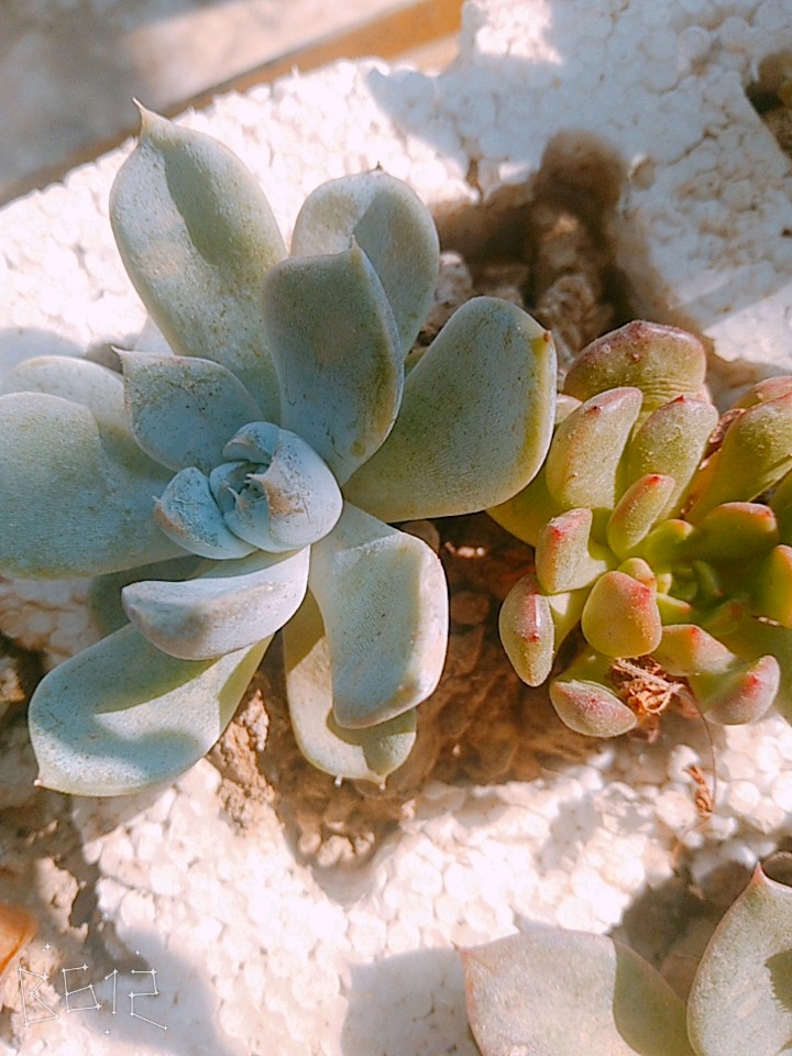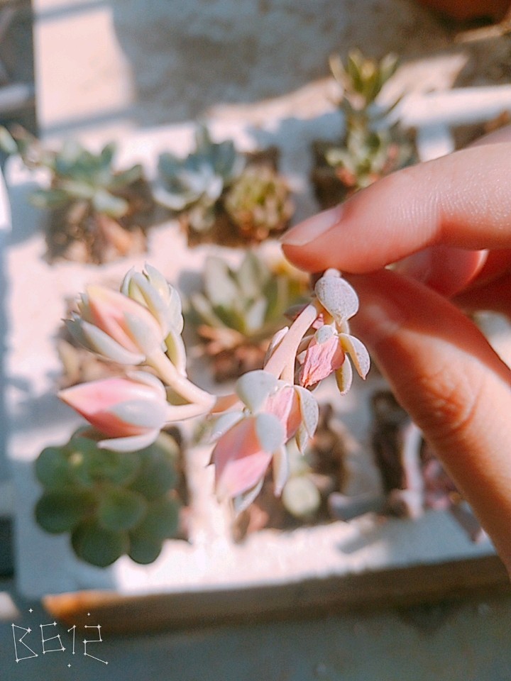 我都快被热死了,没想到小多肉们还顽强的生长着,前面育苗盆里都是我用叶插出来的哦!