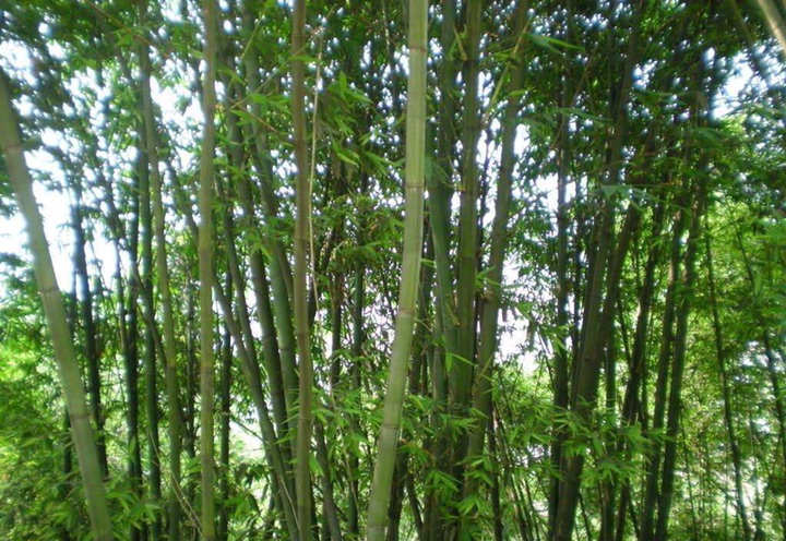 麻竹,别名:葫芦麻竹、美浓麻竹,(学名:Dendrocalamus latiflorus Munro),竿高20~25米,直径15~30厘米,梢端长下垂或弧形弯曲;节间长45~60厘米, 幼时被白粉,但无毛,仅在节内具一圈棕色绒毛环;壁厚1~3厘米;竿分枝习性高,每节分多枝,主枝常单一。是中国南方栽培最广的竹种,笋味甜美,每年均有大量笋干和罐头上市,甚至远销日本和欧美等国。竿亦供建筑和篾用,庭园栽植,观赏价值也高。