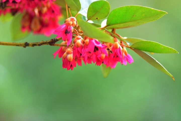 红花荷-绿叶宽衣醉碧水,红花接待惹人狂