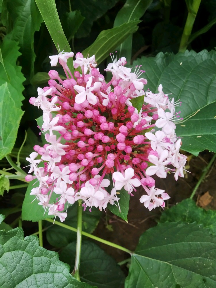 粉色佳人似的!大花朵,簇生,又像粉红色的星星,比起锈球一点也不逊色,最重要它野生能力超强啊!我是懒人,不喜欢太娇贵的花,动不动就死了!而这种花就不用管它,种那就是了!开花一茬又一茬!耐旱又耐寒的,也不生虫。然而又自己会繁殖,根生的挺快,今年种一颗,明年好几颗,长起来像小树。不过它也有缺点:就是它的叶子,有类似臭椿树的味道,你要不摸也没有,摸了手上就有一小会儿气味😂,不过我觉得都可以接受,就像有一位美女,它有狐臭,就像杨玉环,哈哈!也不影响它的美丽。😂