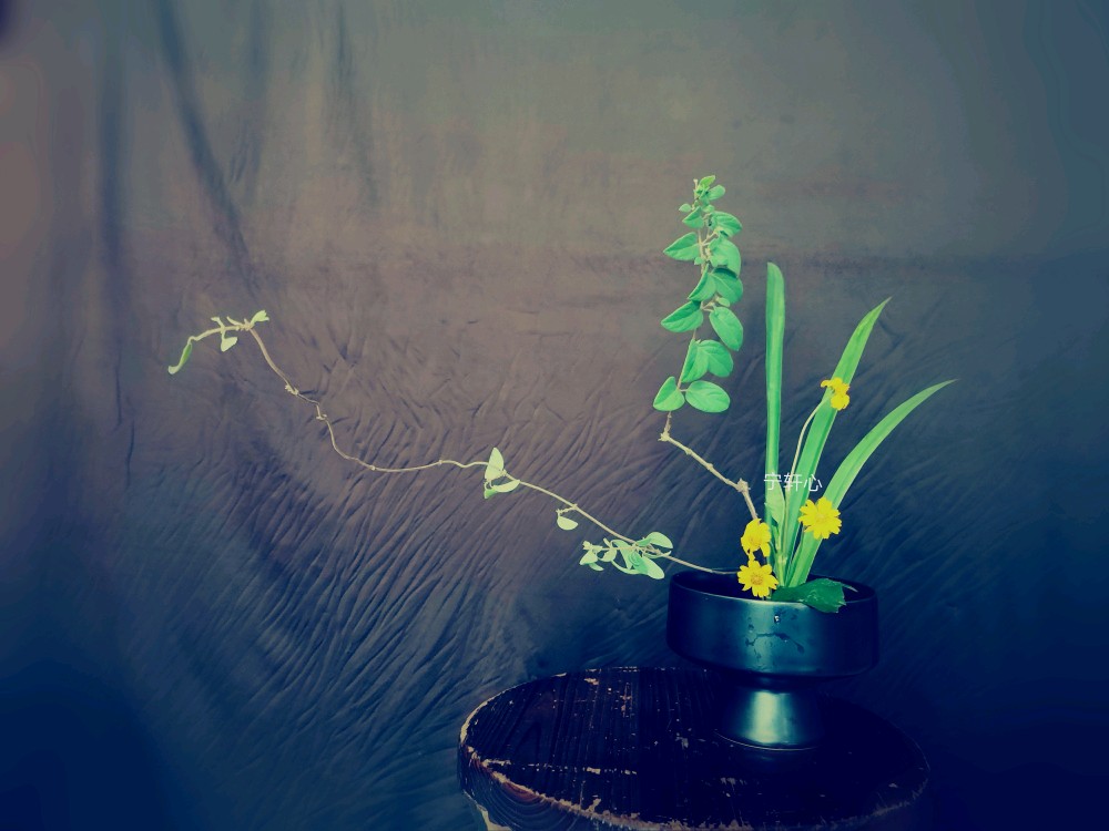家里的金银花,采枝下来,加点路边的小黄菊。