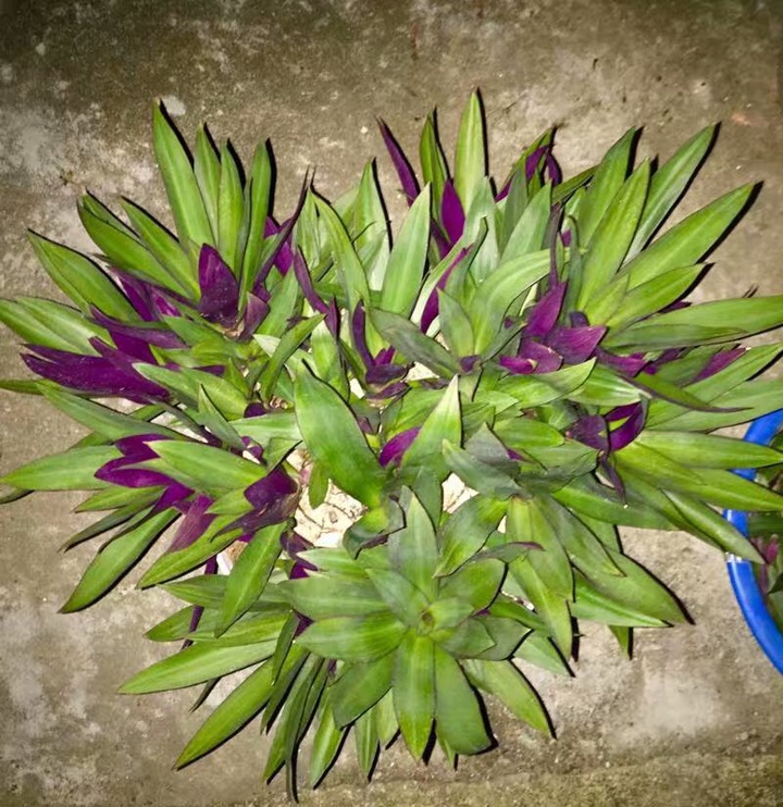 蚌兰还是露养漂亮,晒得紫紫的!放在客厅那几盆长得是长长的叶子,没有一点紫色,两面都差不多一样!