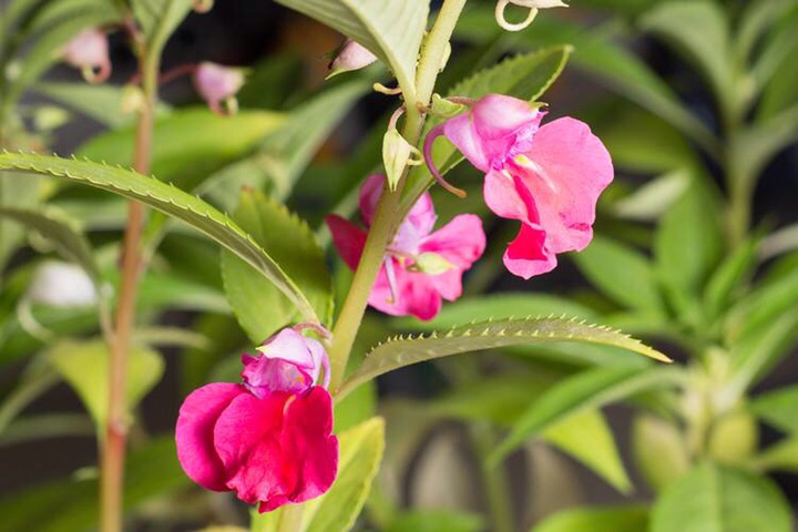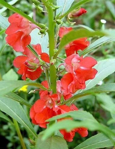 凤仙花,别名:指甲花,急性子,凤仙透骨草,拉丁文名:Impatiens balsamina L.,为双子叶植物纲、牻牛儿苗目、凤仙花科、凤仙花属一年生草本花卉,[1]全株分根、茎、叶子、花、果实和种子六个部分。因其花头、翅、尾、足俱翘然如凤状,故又名金凤花。凤仙花的身体有根、茎、叶子、花、果实和种子六个部分。花颜色多样,有粉红,大红,紫色,粉紫等多种颜色,花瓣或者叶子捣碎,用树叶包在指甲上,能染上鲜艳的红色,非常漂亮,很受女孩子的喜爱。民间常用其花及叶染指甲。茎及种子入药。茎有祛风湿、活血、止痛之效,用于治风湿性关节痛、屈伸不利;种子称“急性子”,有软坚、消积之效,用于治噎膈、骨鲠咽喉、腹部肿块、闭经。