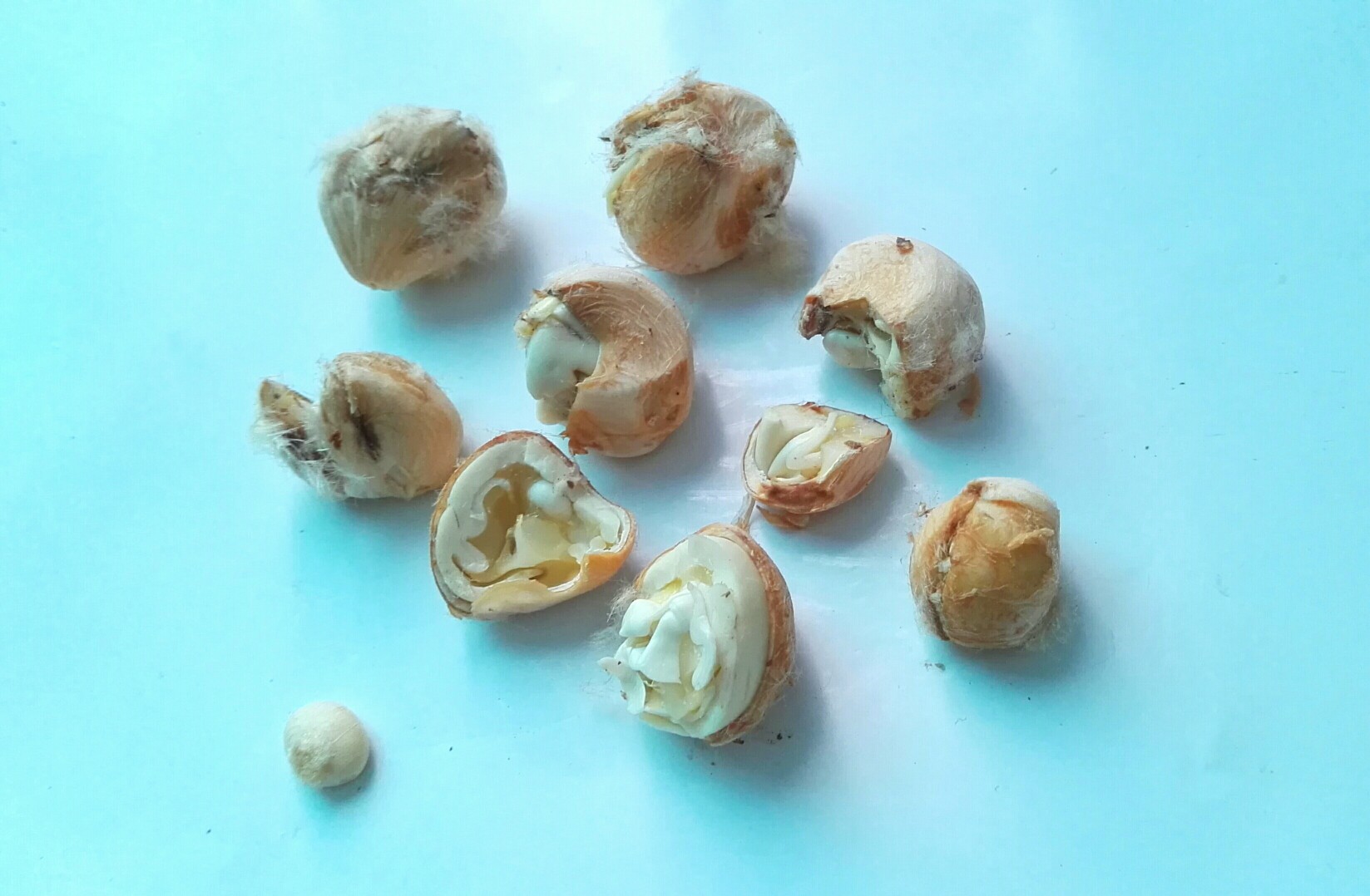 所谓长绵毛,种子大,不规则的梯状楔形表皮暗褐色,有白色螺纹。(๑•ั็ω•็ั๑)