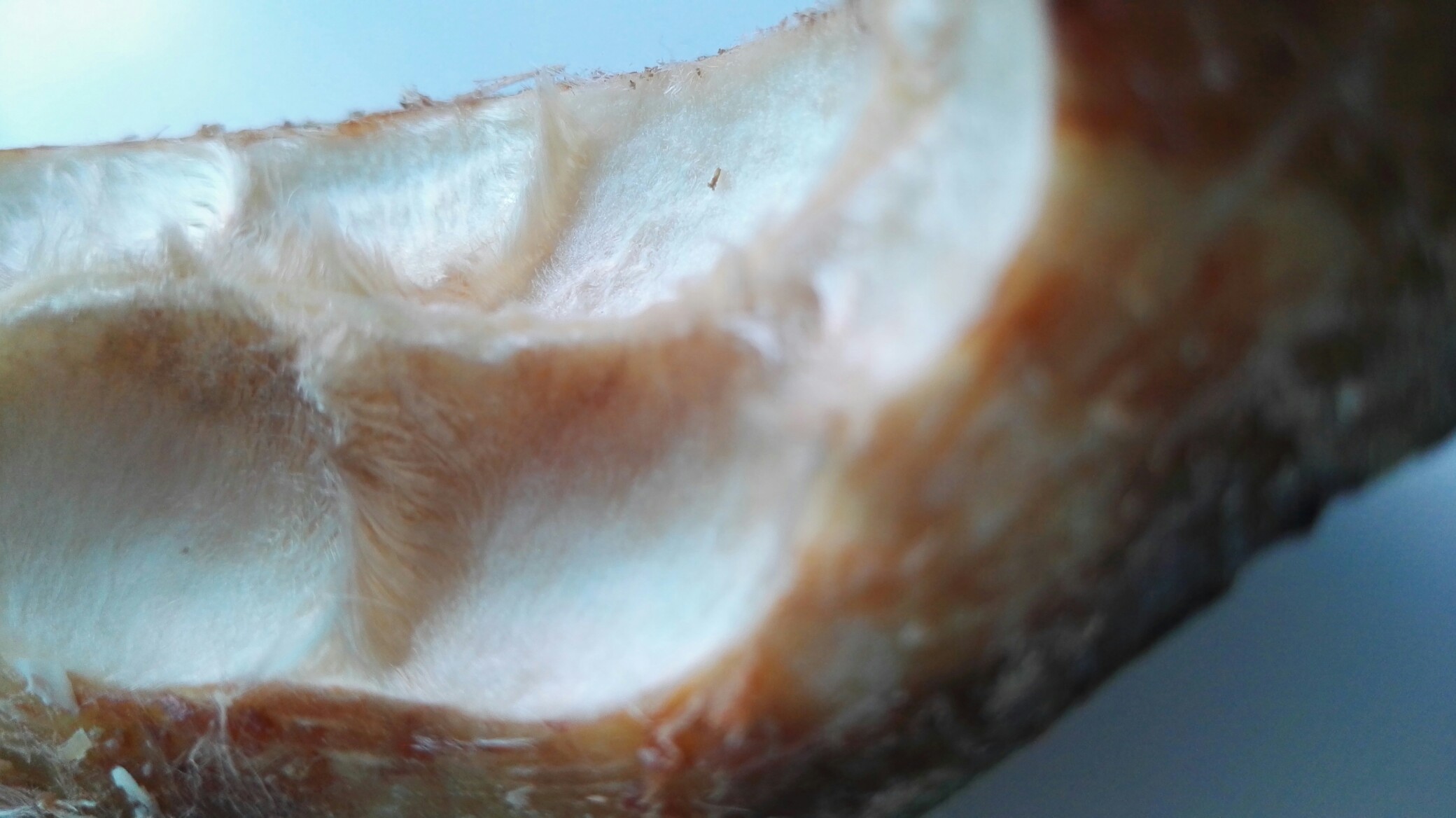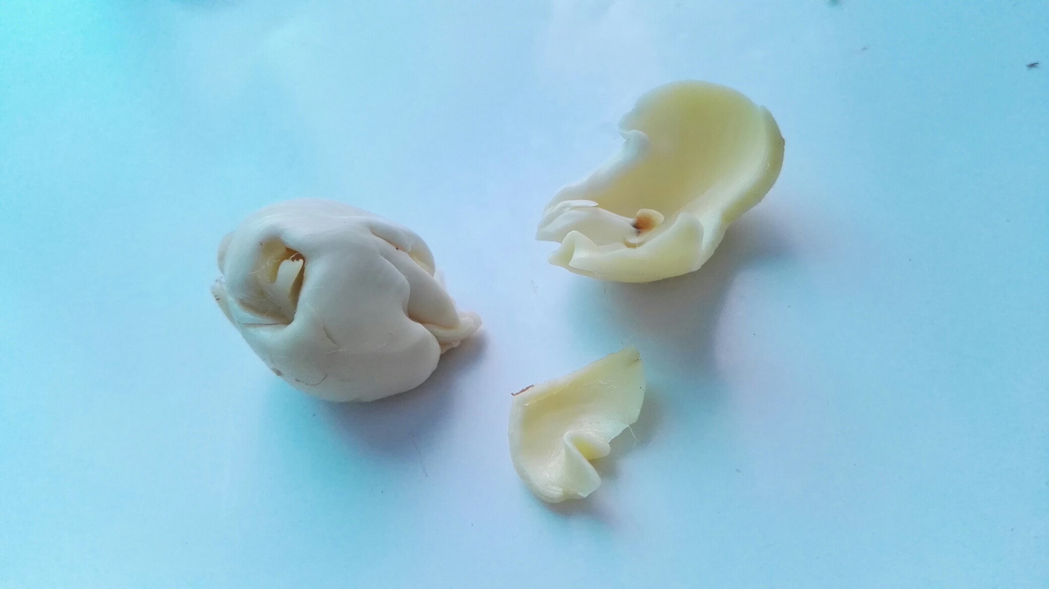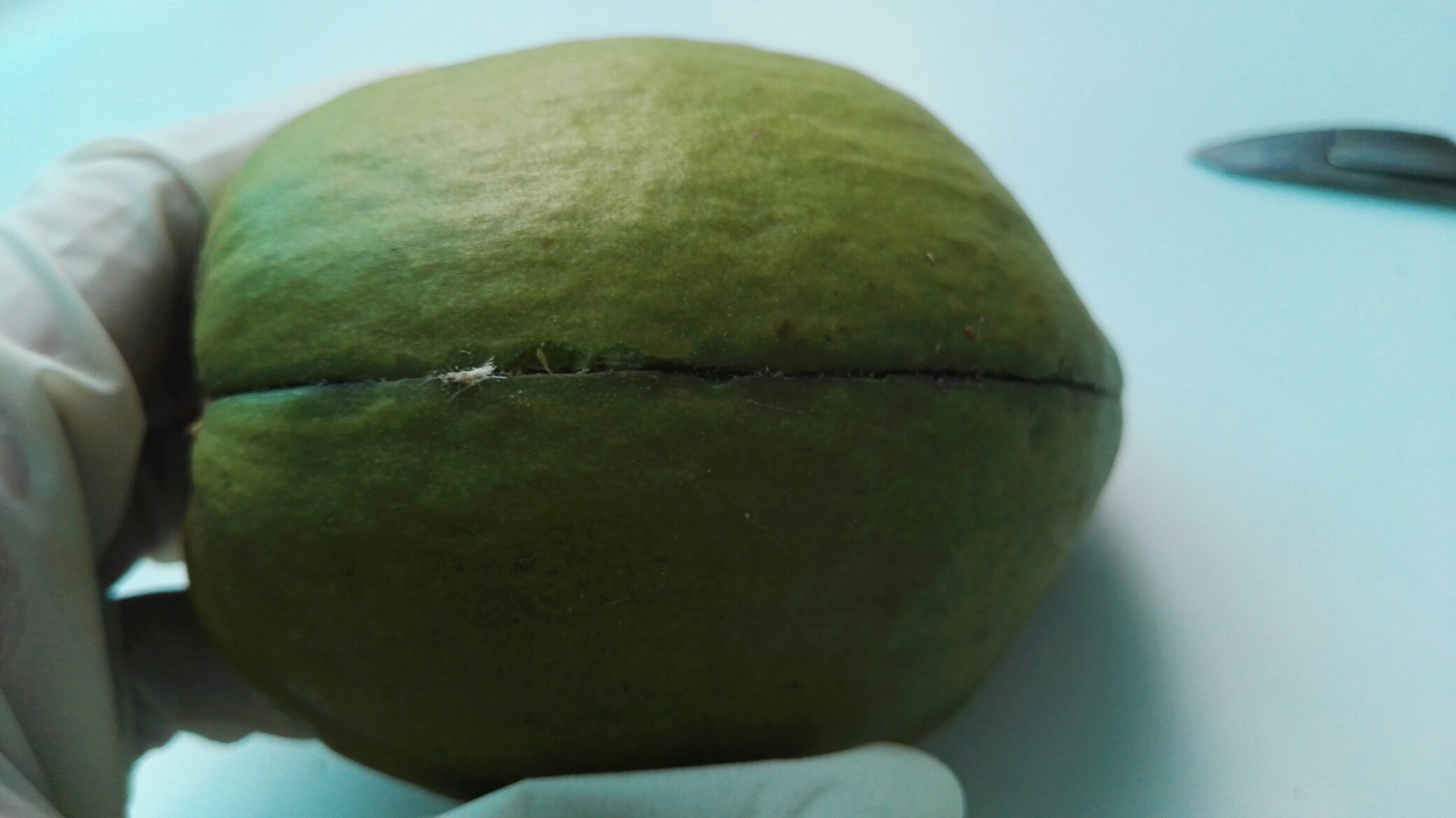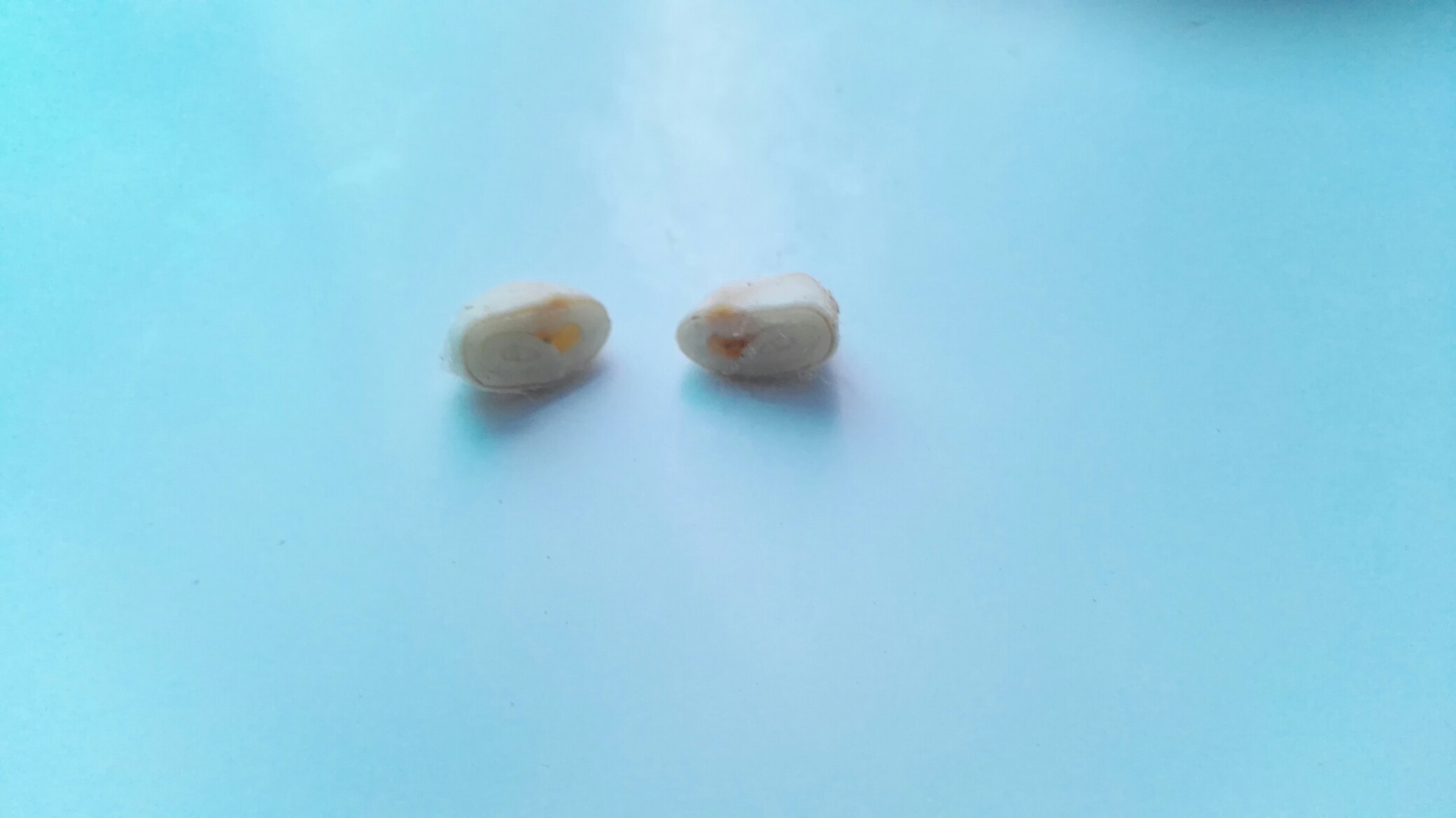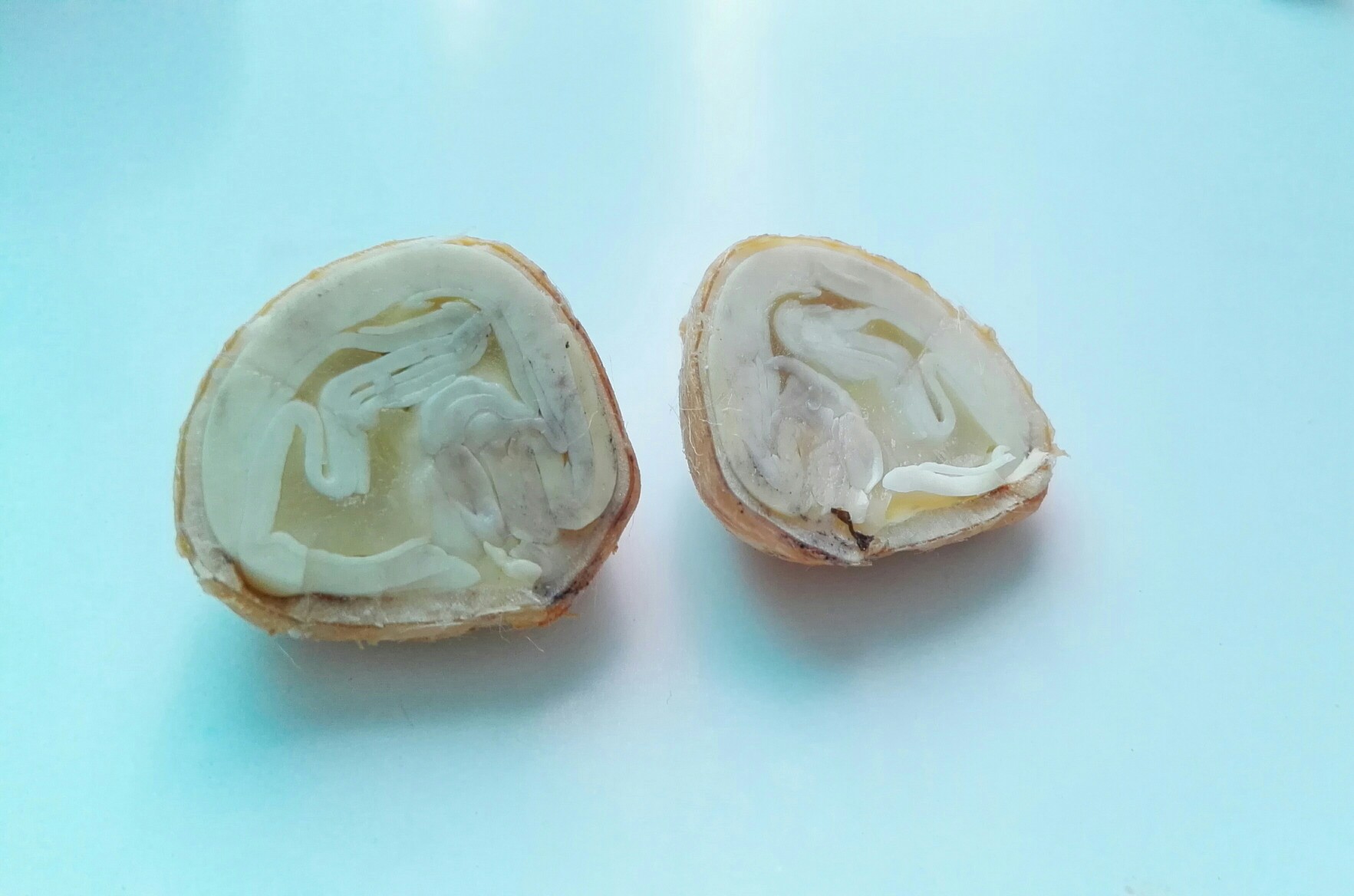 咱们实事求是😂刀进去的时候碰到的很硬的东西就是种子,其实这时候种子显得稍为脆弱了,可能是刚刚受过伤😥第一枚种子在拿出来的过程中……呃……断了
