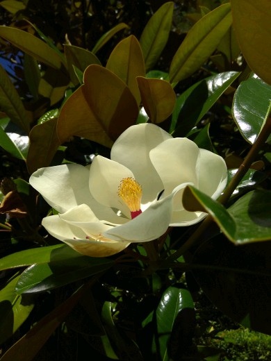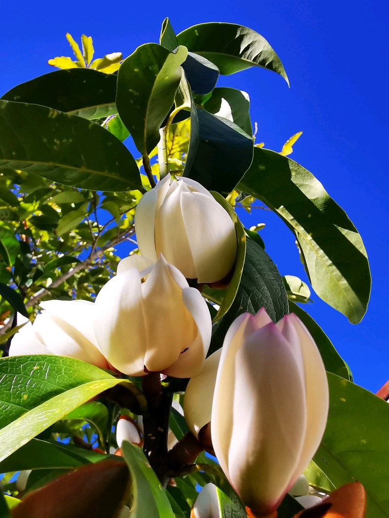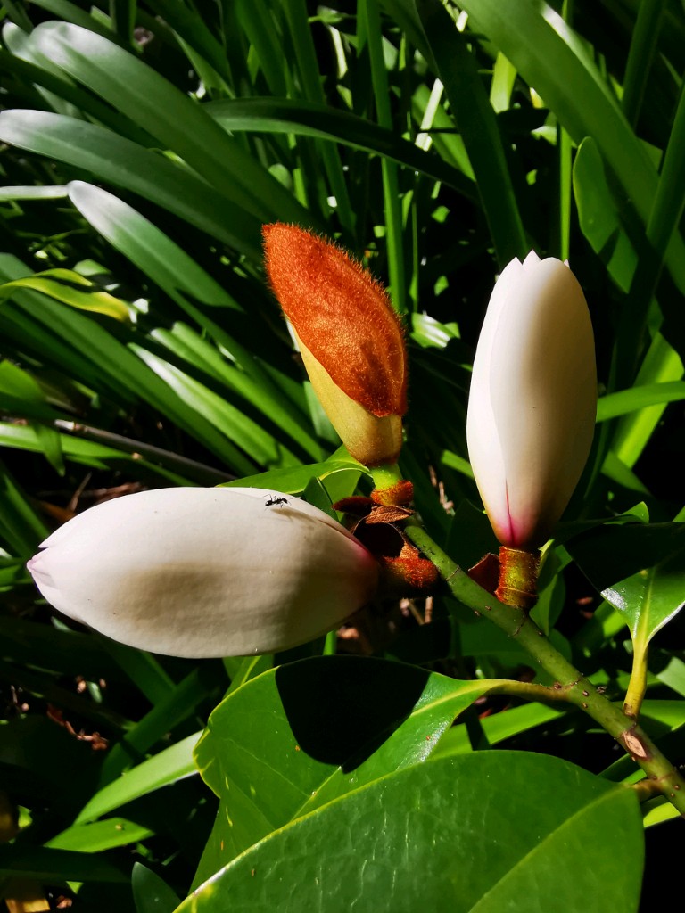 进入含笑季节了,看, 我亲植的这株含笑又开花了。这含笑每年都开得早,开得很好,这种含笑挺高,叶子大而明亮,花大且漂亮。唯一缺点就是没有香味,不知是什么品种?