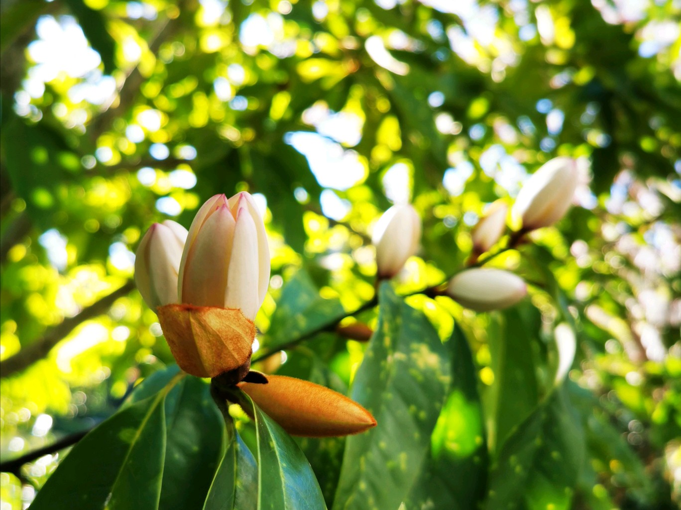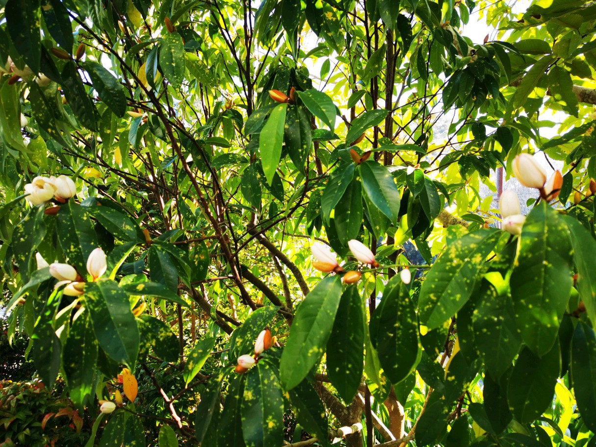 一 旁的深山含笑也开笑了,花更大,而且很香很香