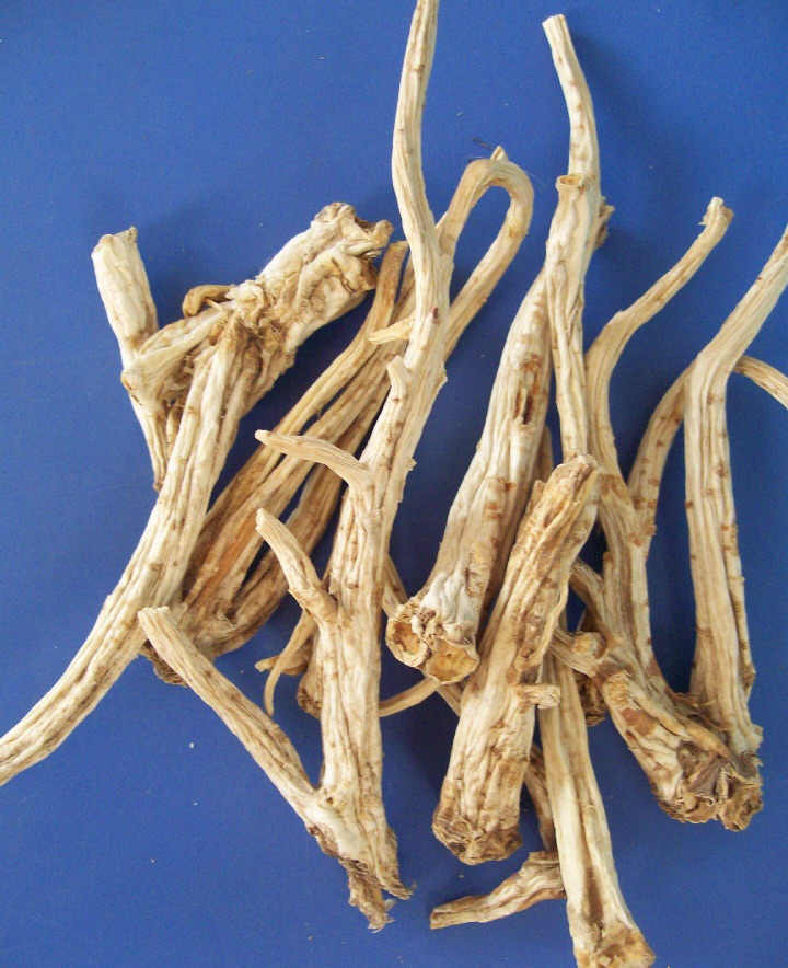 桔梗科桔梗属,根部入药。味辛性微温,有小毒。功能:宣肺祛痰,利咽、排脓、利五脏,补气血,补五劳,养气。主治:咳嗽痰多,肺痈吐脓,咽喉肿痛,口舌生疮。