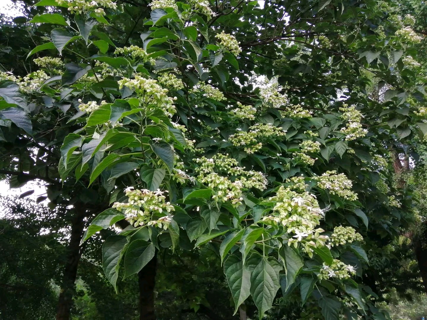 的,有点像百合的味道,并且很远就可以闻到。第一次见到海州常山实在老家,因为没有之前见过这种植物,还很香,那时候还不知道一些识花的软件,便把它的特征全输在百度上一个个查,真是费了一般心思才知道究竟是啥玩意儿。之后在长安公园溜达,闻到这个熟悉的味道,一开始想不起来是啥,跟着味儿找,才发现了一株海州常山。