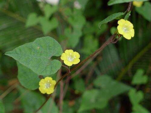 叶心状卵形,长1.5~7.5厘米,宽1~5厘米,顶端钝,渐尖或长渐尖,具小短尖头,基部心形或深凹,全缘或通常具不规则的粗齿或锐裂齿,有时为深或浅3裂,两面近于无毛或疏生微柔毛;叶柄细长,长1~5厘米,无毛或被短柔毛,具小疣状突起。