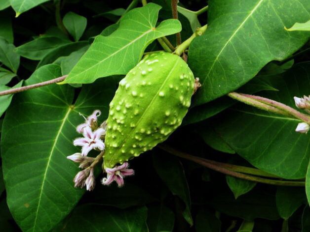 萝藦(学名:Metaplexis japonica (Thunb.) Makino)是萝藦科萝藦属植物,多年生草质藤本,长达8米,具乳汁;茎圆柱状,下部木质化,上部较柔韧,表面淡绿色,有纵条纹,幼时密被短柔毛,老时被毛渐脱落。叶膜质,卵状心形,长5-12厘米,宽4-7厘米。总状式聚伞花序腋生或腋外生,具长总花梗;总花梗长6-12厘米,被短柔毛。蓇葖又生,纺锤形,平滑无毛;种子扁平,卵圆形,长5毫米,宽3毫米。花期6-9月,果期9-12月。