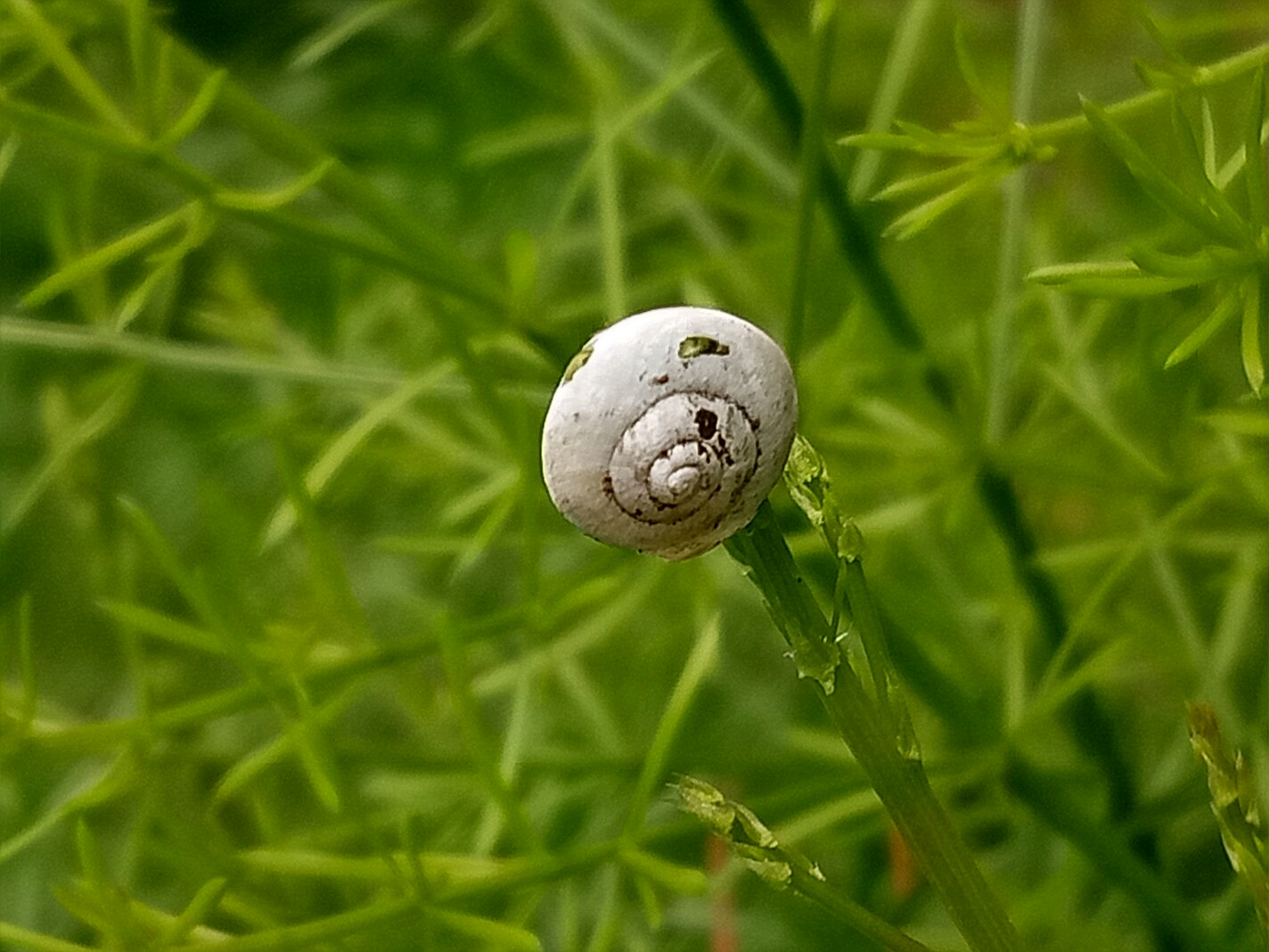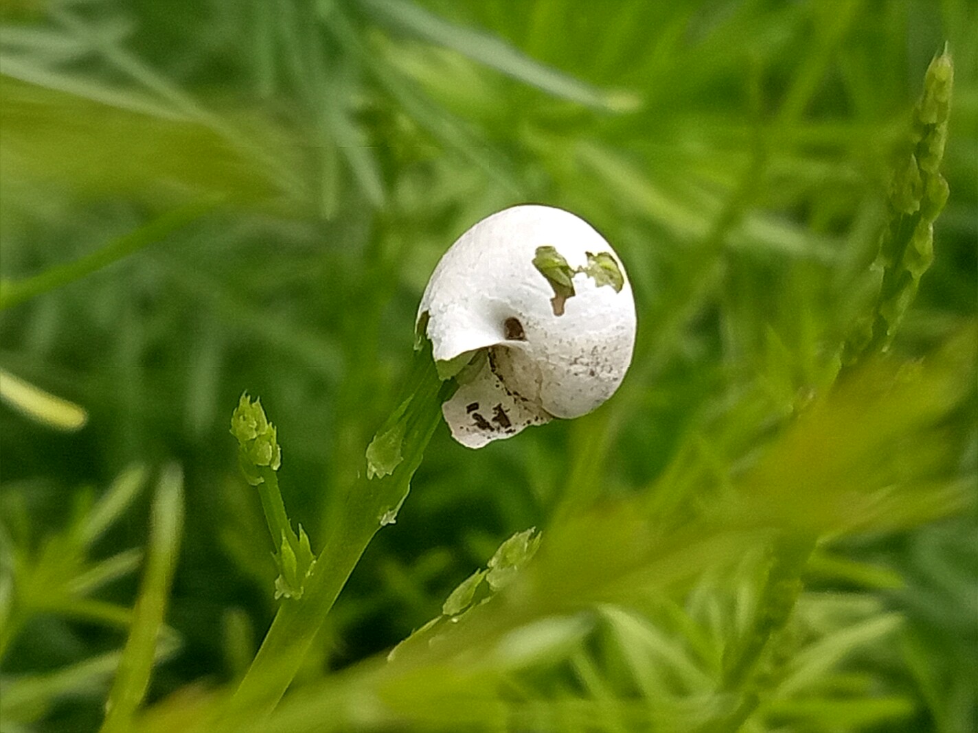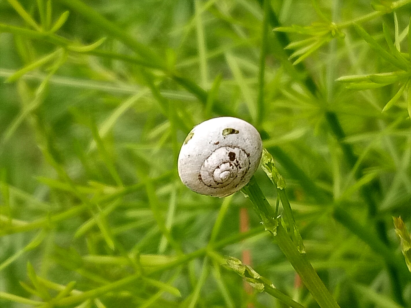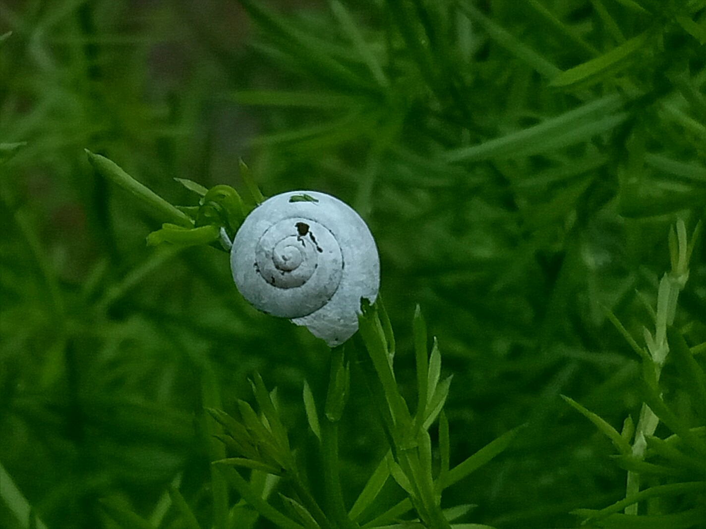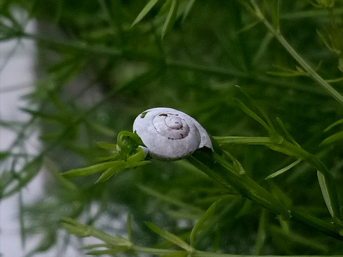 的嫩枝却没有因蜗牛死掉而停止生长,于钻进了蜗牛壳内,用了三天的时间嫩枝头终于破壳而出继续生长!图一,二,三是三天前拍的,后面的图是三天后拍的,天冬门穿破蜗牛壳继续生长。😃😃😃
