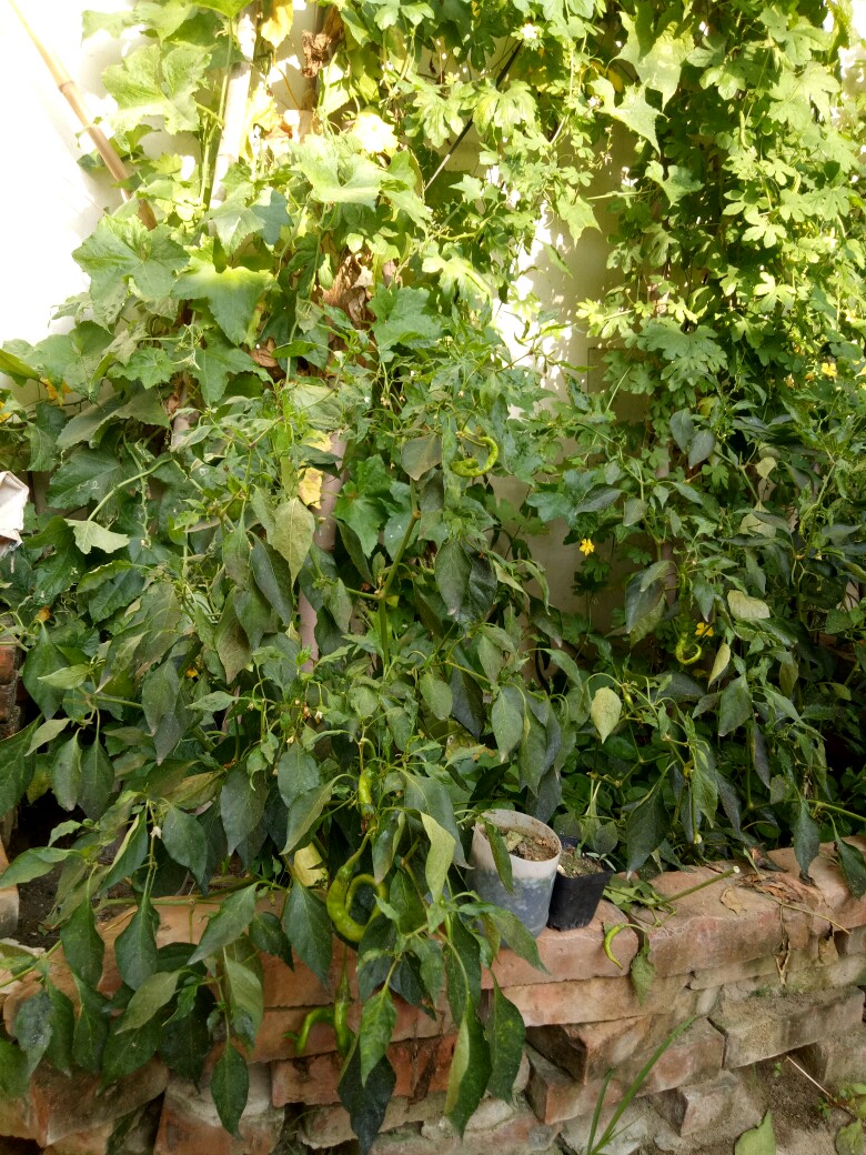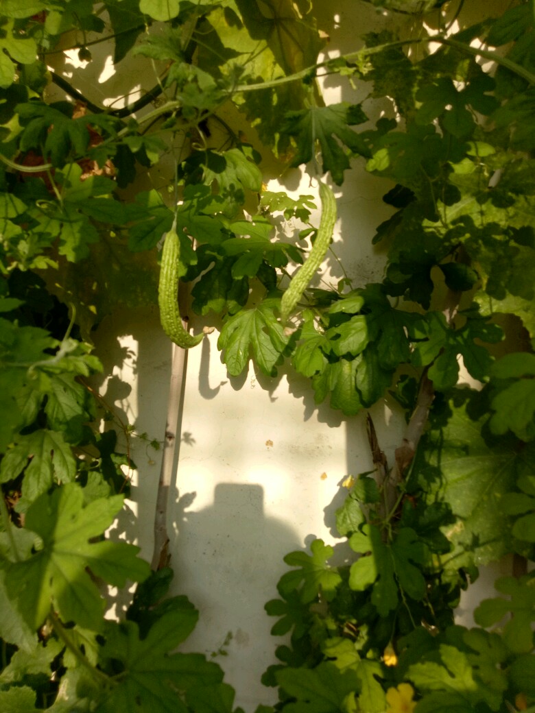 在院子里种了两颗丝瓜和苦瓜,还有四颗辣椒,整个夏天都有新鲜的纯绿色蔬菜吃,给力💪💪