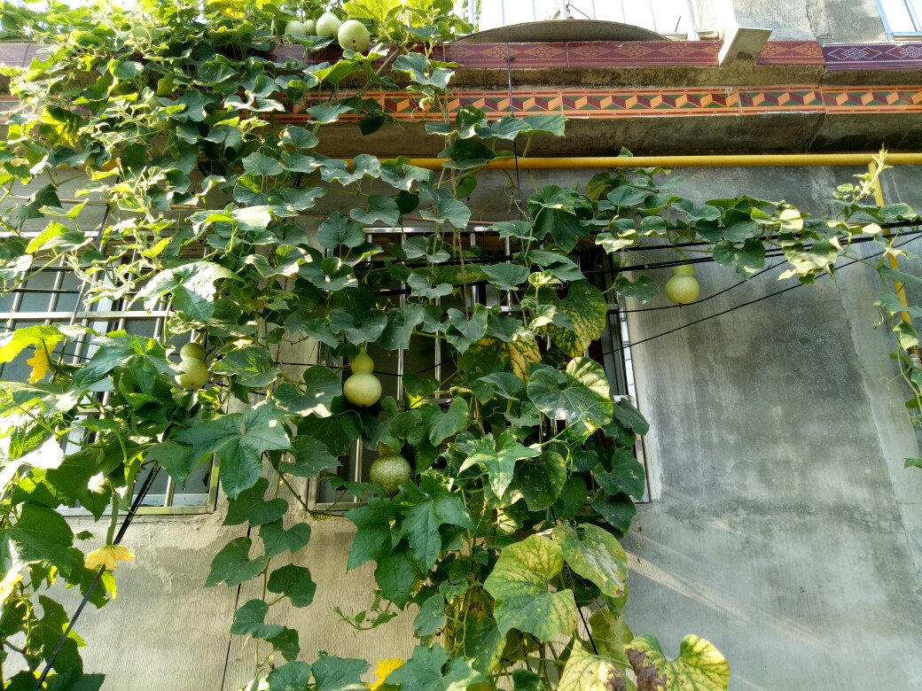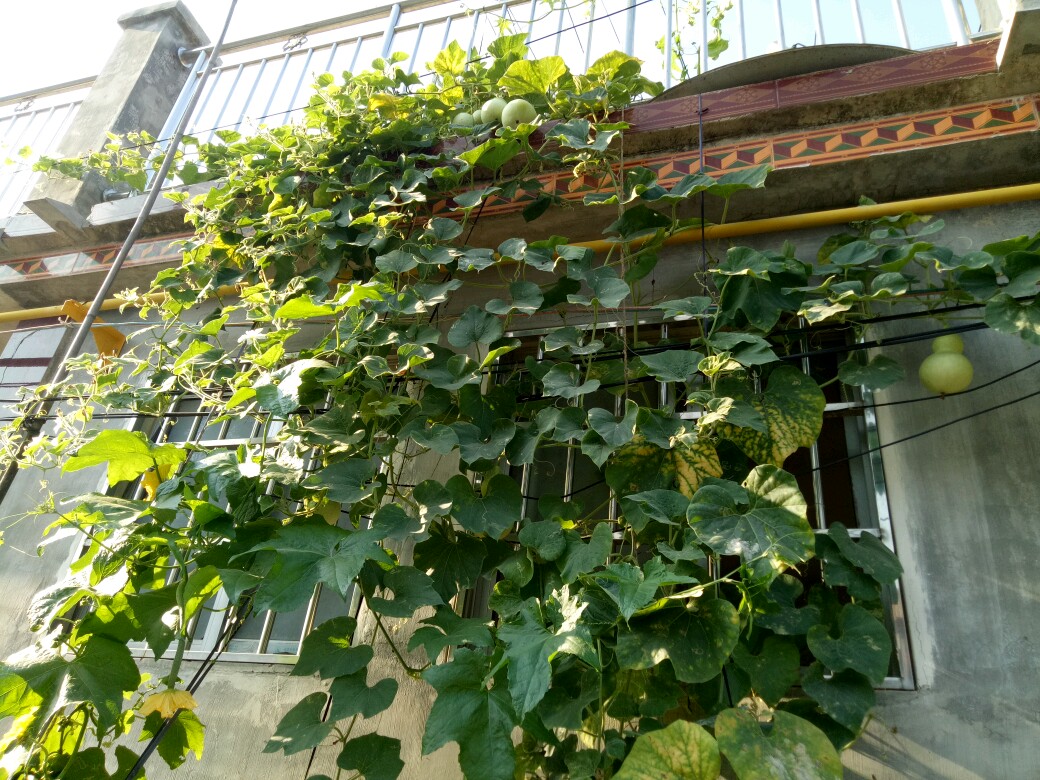 春天花盆里长出了一颗葫芦幼苗,本来想拔掉,后来没忍心,想着结不结果先种上吧,还以为是大的菜葫芦,没想到是小可爱,还结了又十几个,真是大惊喜