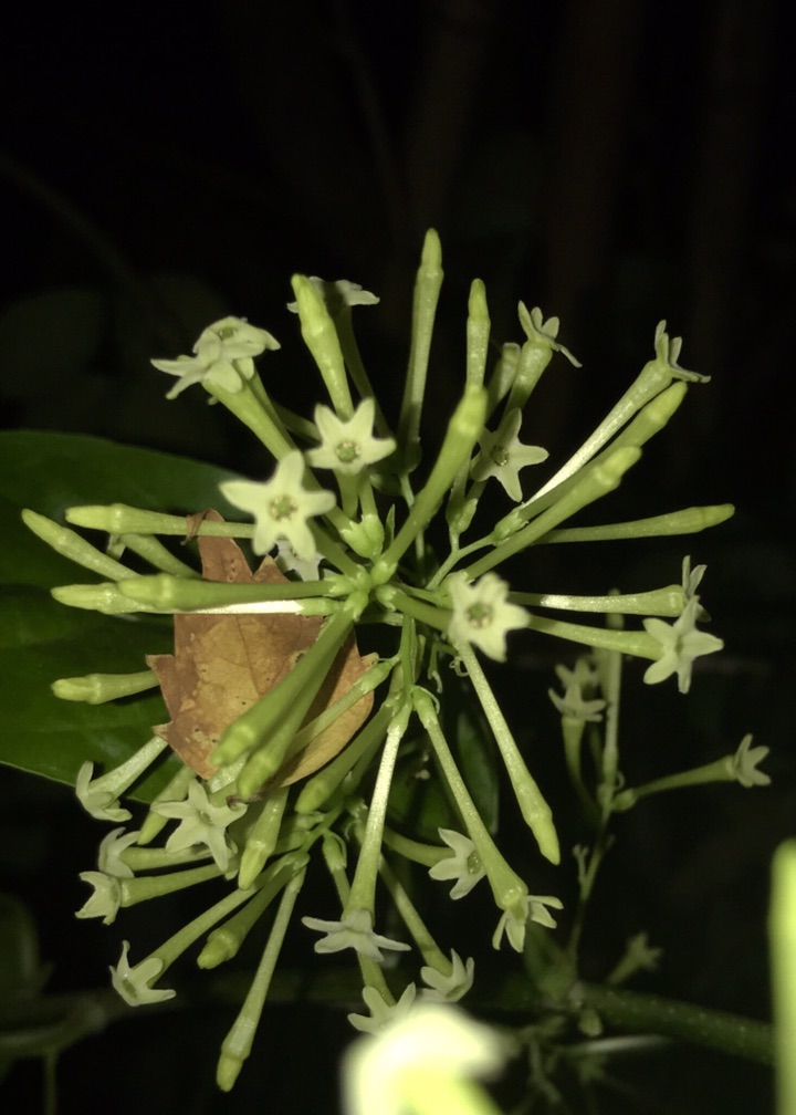 夜色苍茫中,夜来香绽放,吐露芬芳。