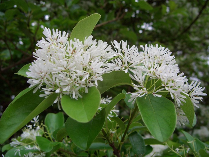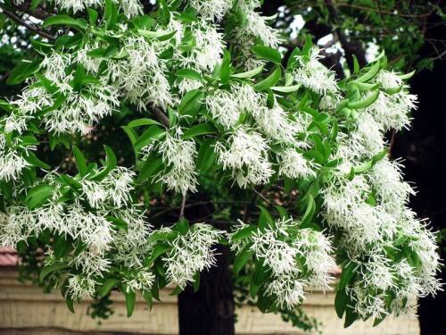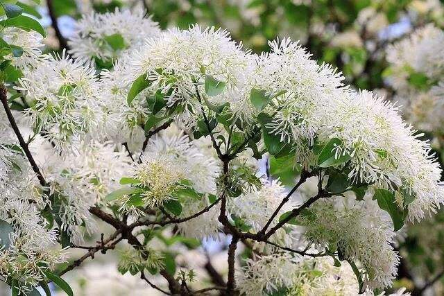 流苏树(学名:Chionanthus retusus Lindl.et Paxt.):是木犀科流苏树属的植物,是落叶灌木或小乔木,树形高大优美,枝叶茂盛,初夏满树白花,如覆霜盖雪,清丽宜人。秋季结果,核果椭圆形,蓝黑色。近看,流苏树的叶为单叶对生,叶片椭圆形或长圆形,全缘,近革质。雌雄异株,圆锥花序生于侧枝顶端;花冠白色,4深裂,裂片线状倒披针形,雄花雄蕊2,雌花柱头2裂。花期6-7月,果期9-10月。