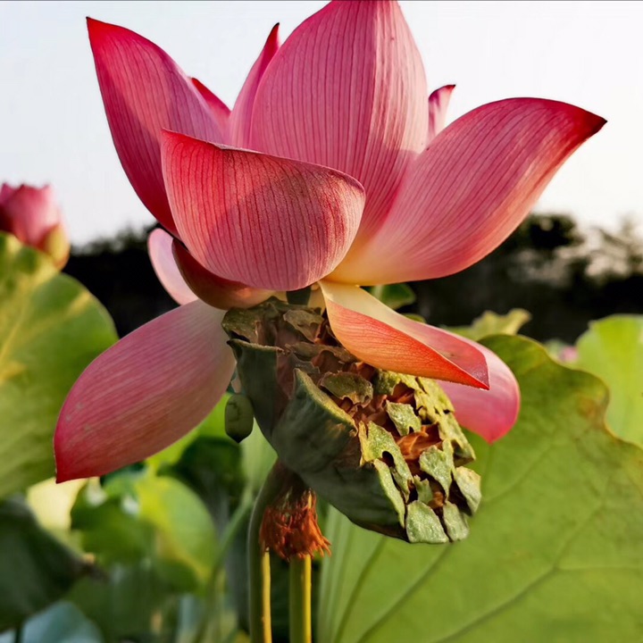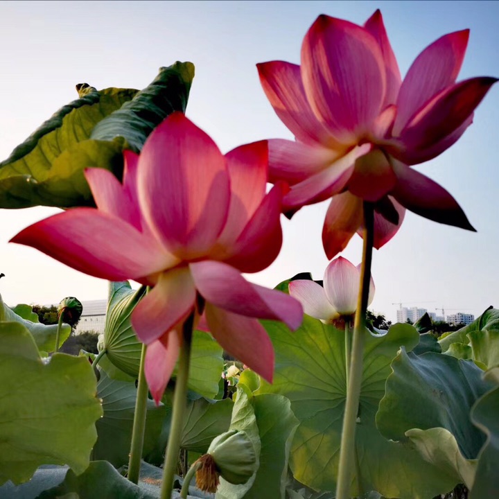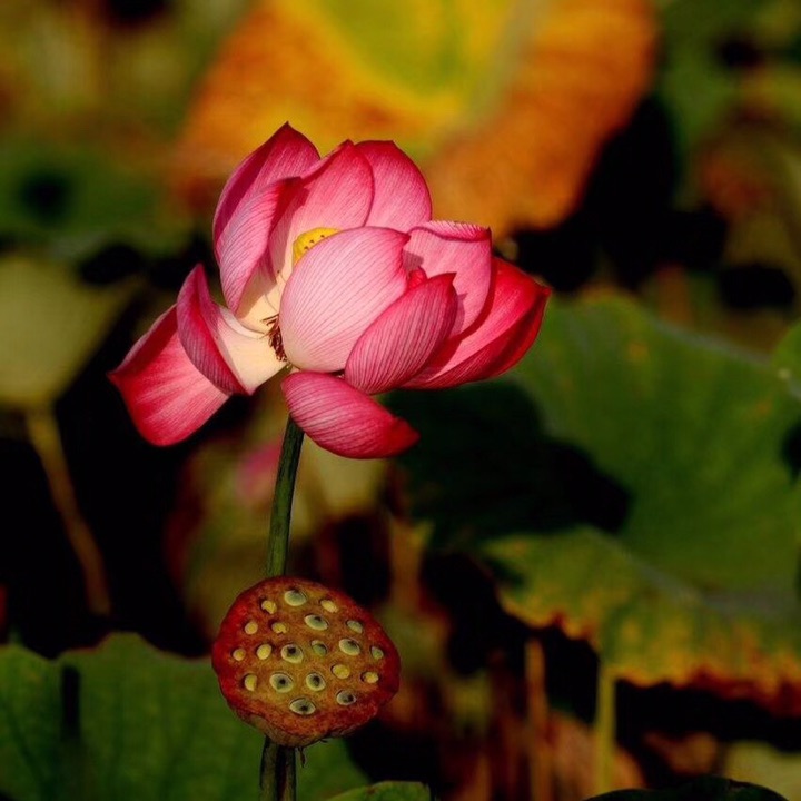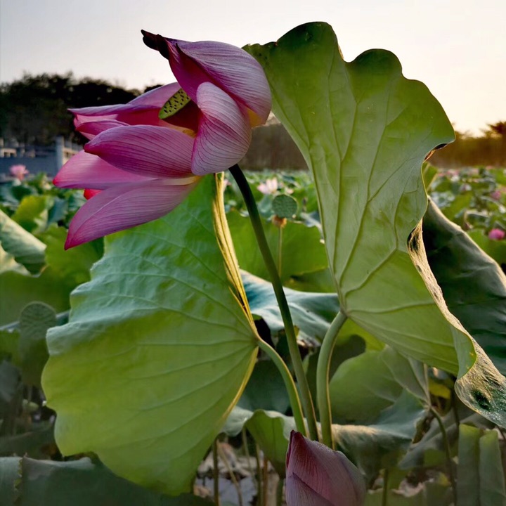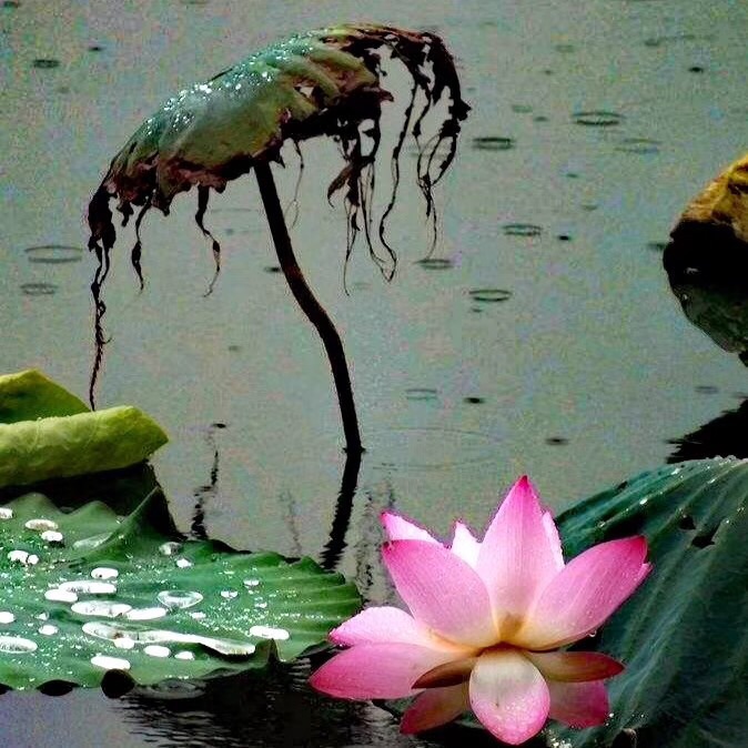 秋风起,秋荷宁静通透。应该是谢落季节,可能今年气温偏高,满池荷花仍勺勺其华,花声翻合着日子,缄默的坚韧,道尽这日月星辰,毕竞是秋了,我相信,这满池红荷会谢去,成熟为藕。人们曾以“残”为你冠名,那时你会一道道景,被靓丽珍藏。 枯荷在秋风中静默,安静淡然地守候着天边最后一丝晚霞,沉默的枯荷和飘落的枫叶一样,都在以优雅的姿势独舞着整个秋天。