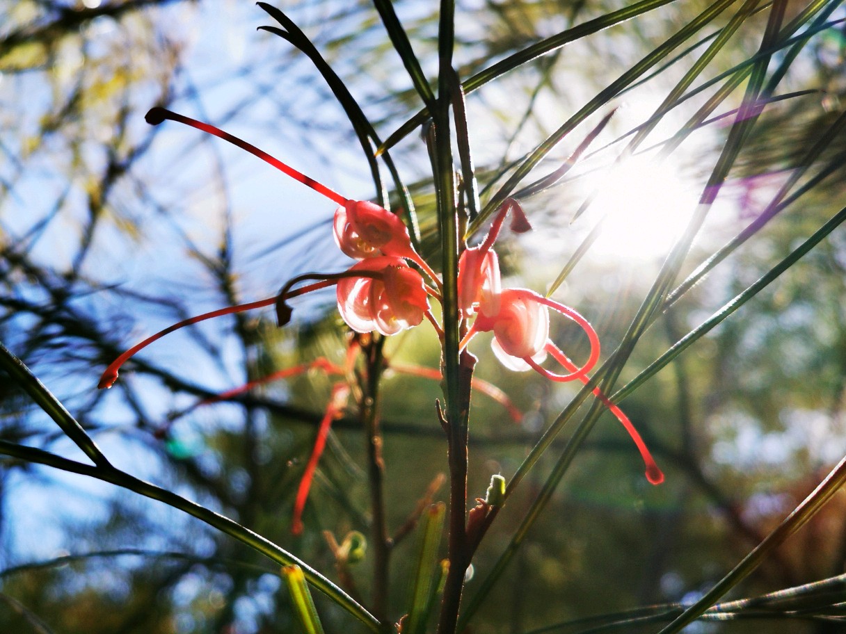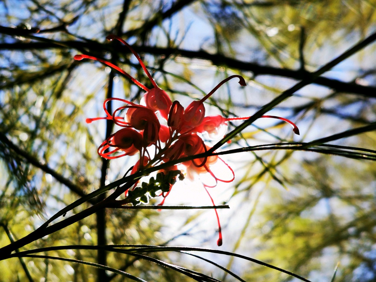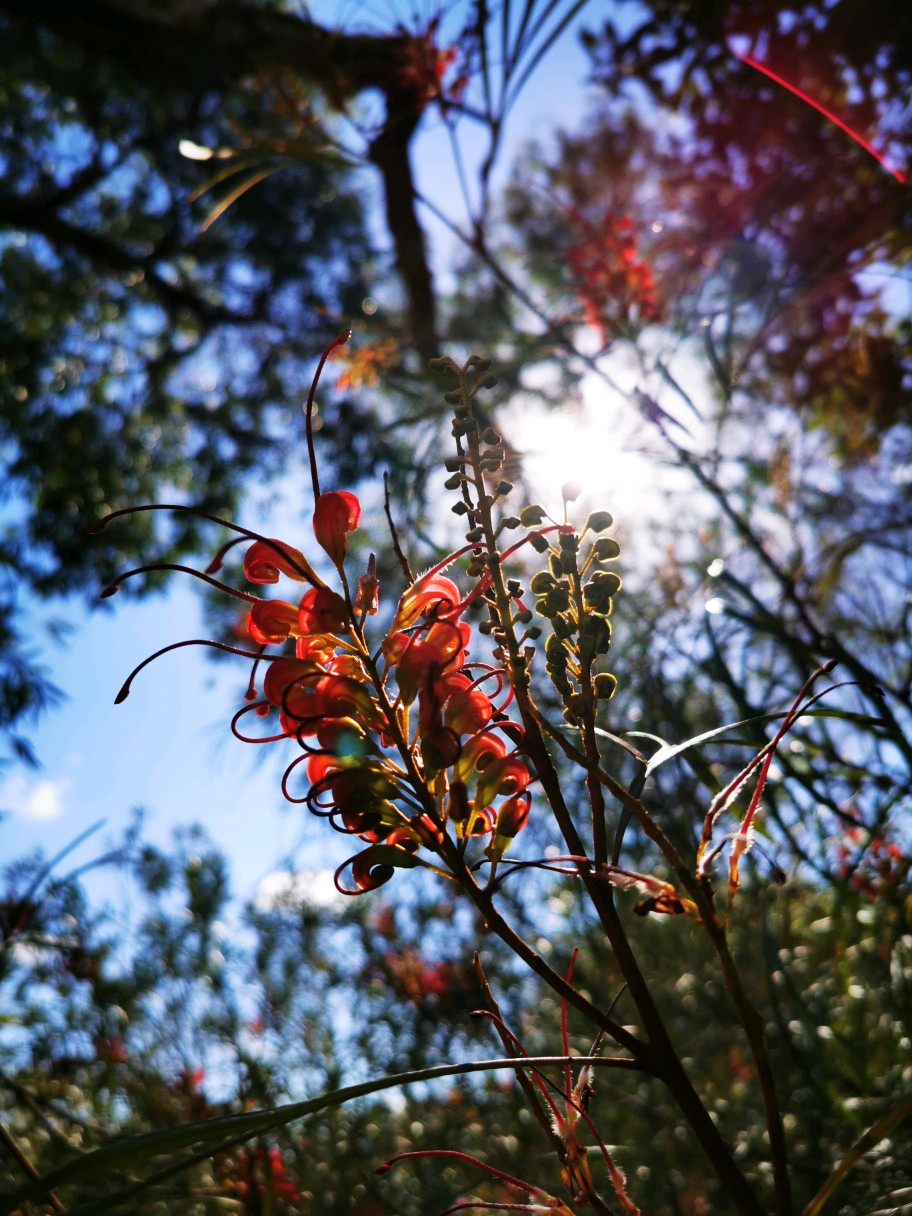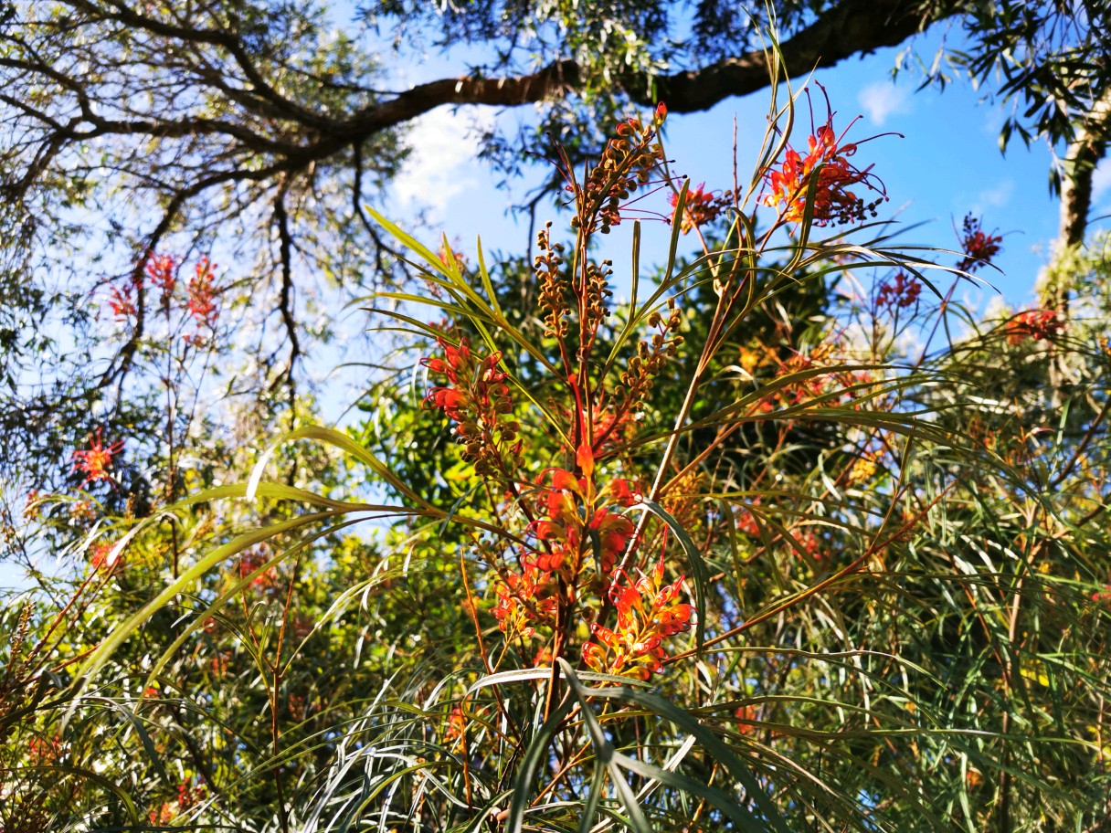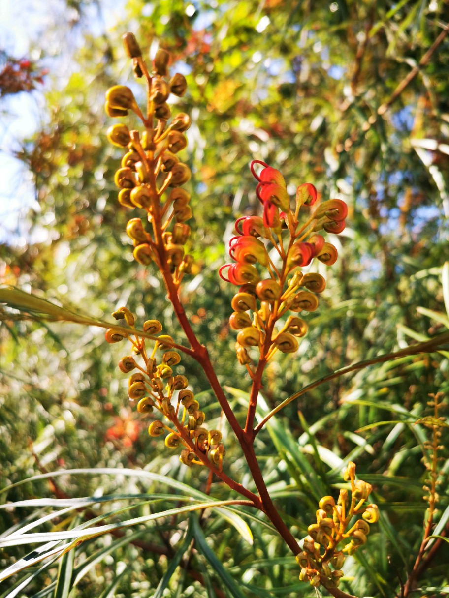 Grevillea “firesprite”银桦,山龙眼科植物,小型乔木,这是一种杂交品种。