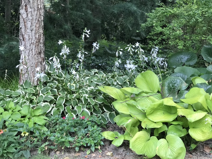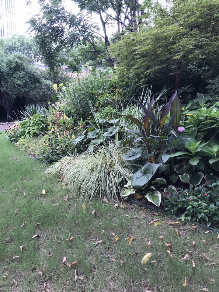 在公园散步时,听见鸟儿的叫声,闻到淡淡的花香。