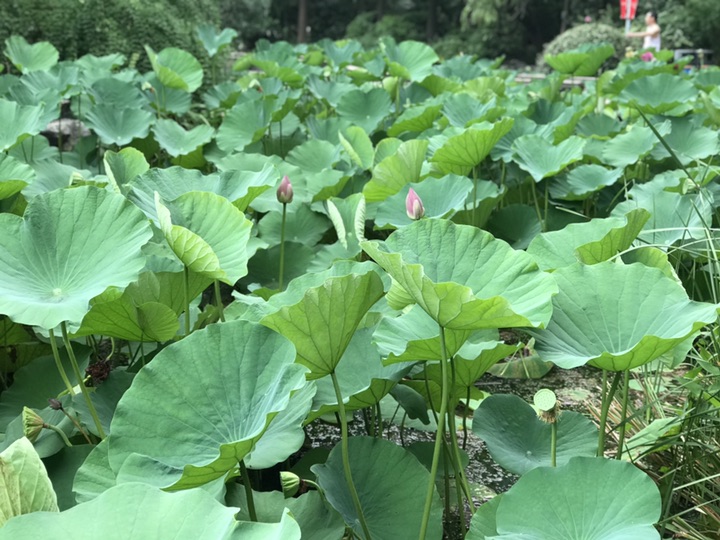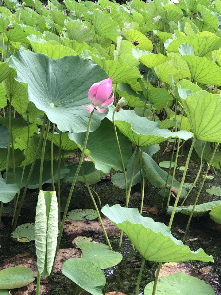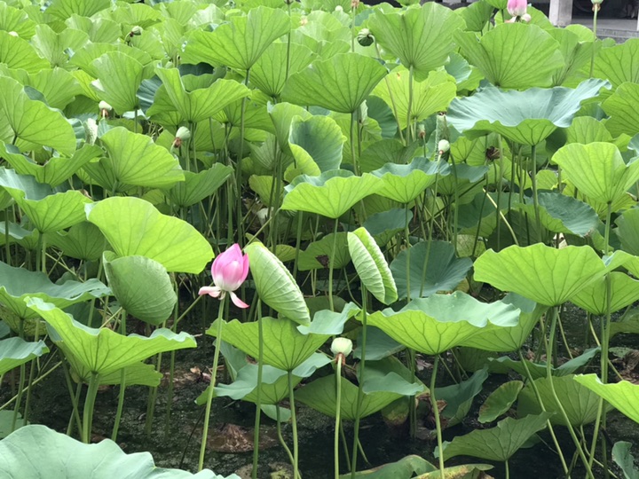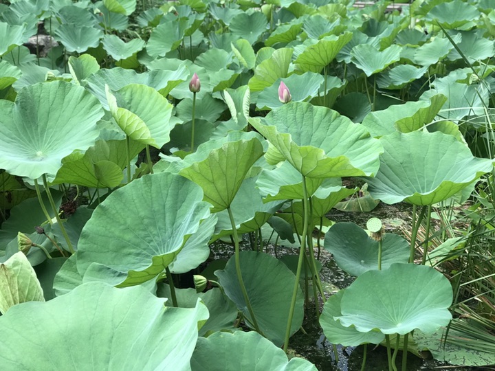 水池旁,一朵朵荷花开了。一个个含苞待放。多 美啊!