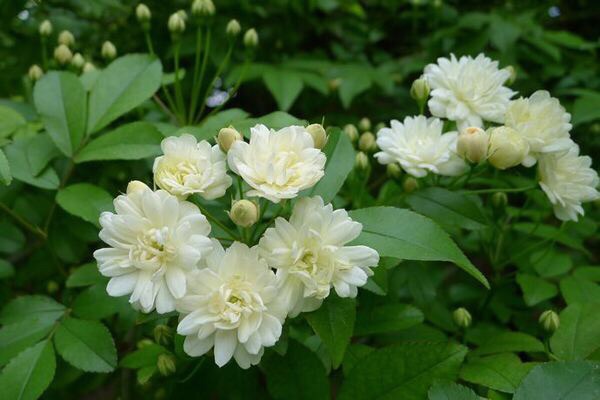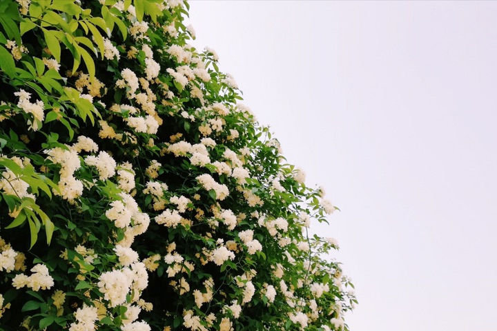 木香花(学名:Rosa banksiae Ait.)是攀援小灌木,高可达6米;小枝圆柱形,无毛,有短小皮刺;小叶3-5,叶片椭圆状卵形或长圆披针形,花小形,多朵成伞形花序,萼片卵形,花瓣重瓣至半重瓣,白色,倒卵形,花期4-5月。生溪边、路旁或山坡灌丛中,海拔500-1300米。分布于中国四川、云南。全国各地均有栽培。木香的根可作为中药使用,味苦,可与枳壳、川楝子、延胡索等配合,可理气疏肝、健脾消滞。此花有栽培,具有较高的园艺价值。