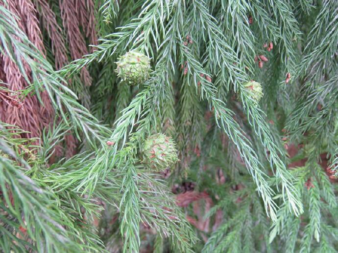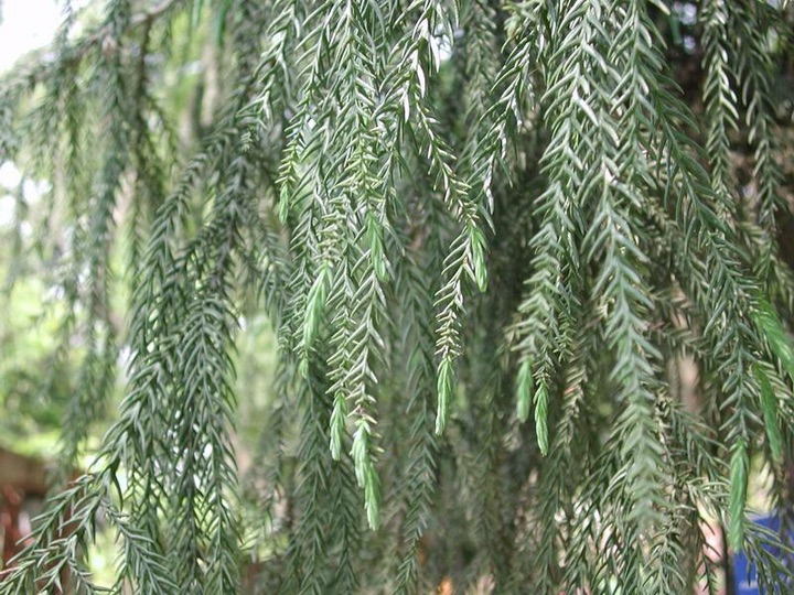 柳杉,拉丁学名Cryptomeria fortunei Hooibrenk ex Otto et Dietr,又名长叶孔雀松。乔木,高达48米,胸径可达2米多,树冠狭圆锥形或圆锥形;树皮红棕色,纤维状,裂成长条片状脱落;大枝近轮生,平展或斜展;小枝细长,常下垂,绿色,枝条中部的叶较长,常向两端逐渐变短。叶钻形略向内弯曲,先端内曲,四边有气孔线,长1-1.5厘米,果枝的叶通常较短,幼树及萌芽枝的叶长达2.4厘米,四面有气孔线。可作观赏植物,也可药用。