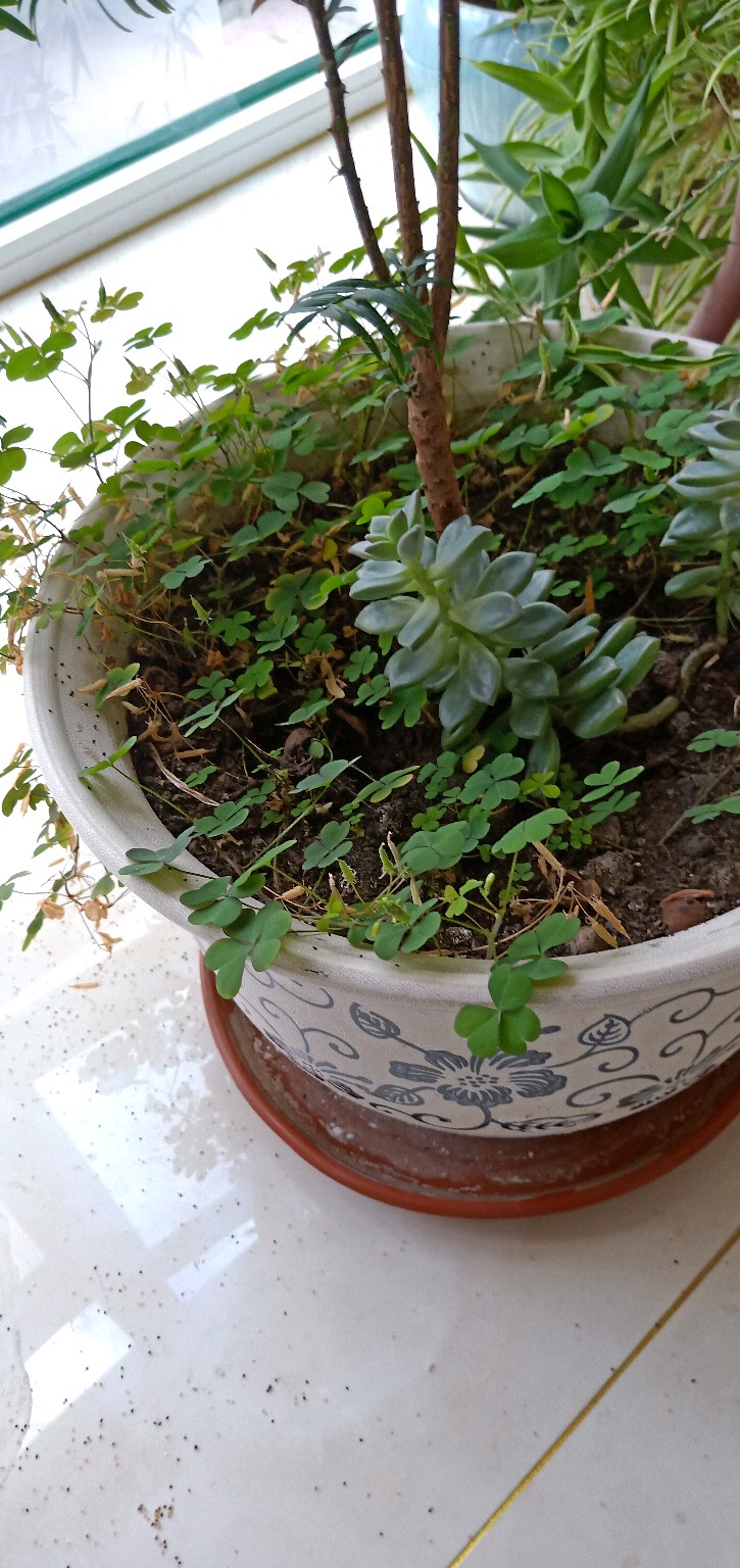 我以前种的那几棵小酢,现在老吓人了。    崩的哪儿都是草籽!