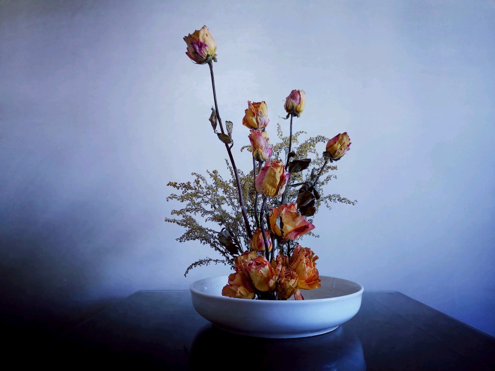 最近,心情灰灰的,鲜花整理不了,家里的干花插一个吧。