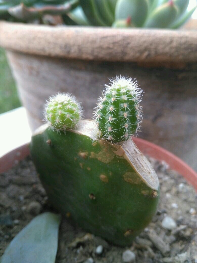 我刚买了一个仙人球(5元买的,开过花了),但是这个仙人球是嫁接后落地生根型的,因为当时用的砧木是三棱剑,此砧木不随球的生长而长粗😰,所以随着球的生长嫁接口快要被仙人球的组织埋起来了(根很差,就是临时长的,还开始萎缩了),已经不能再扦插了。为了救它,我打算牺牲一个草球重新嫁接它。大家谁精通仙人掌嫁接来参谋一下啊!我可算是知道实生苗的好处啦!😢