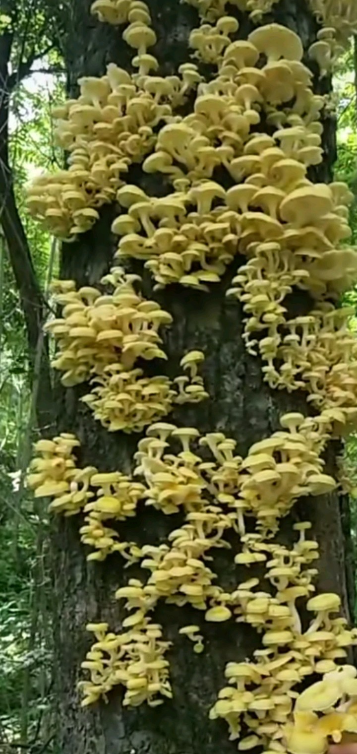 :这蘑菇是变异的品种吗?这么多?一般蘑菇不是长在树根底下吗?怎么长树上的?