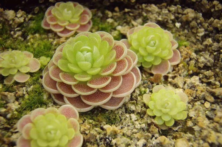 高山捕虫堇(学名:Pinguicula alpina L.)是狸藻科捕虫堇属的一种多年生草本植物,花期5-7月,果期7-9月。这种植物常在中高海拔的阴湿岩壁间或高山杜鹃灌丛下生长。在亚洲、欧洲都有分布,中国在山西、四川、贵州、陕西等省有分布。这种植物能分泌粘液并散发气味诱惑猎物,粘住昆虫后还能分泌消化酶将猎物溶化“吃”掉,因其花朵像一朵朵小莲花,又被称为“美丽杀手”。