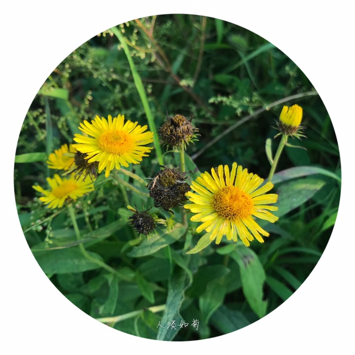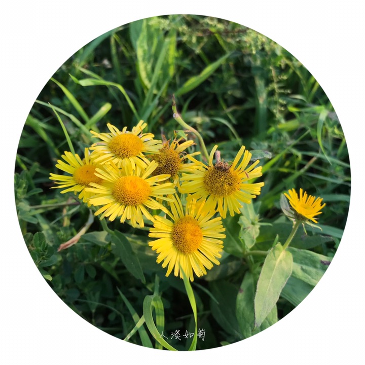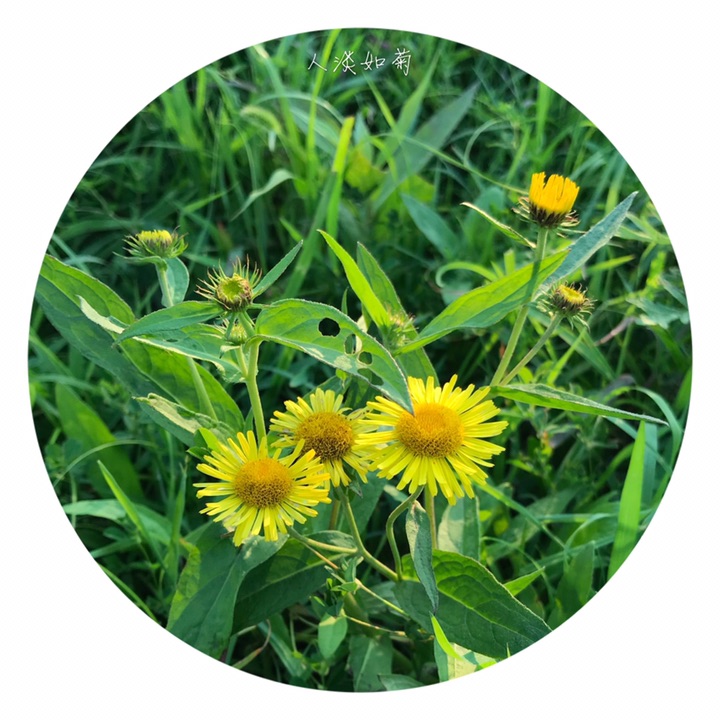 旋覆花(学名:Inula japonica Thunb.)别称金佛花,金佛草、六月菊、旋复花。是菊科旋覆花属植物,多年生草本。根状茎短,横走或斜升,有多少粗壮的须根。茎单生,有时2-3个簇生,头状花序径3-4厘米,多数或少数排列成疏散的伞房花序;瘦果长1-1.2毫米,圆柱形,花期6-10月,果期9-11月。