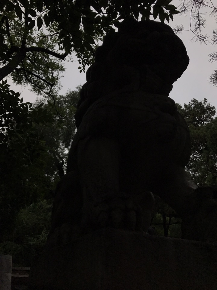以前狮子嘴里衔颗珠子,可以转动,好玩儿之极,近世的狮子,嘴里是空的,张大的尖牙利嘴,已经衔不住珠子。
