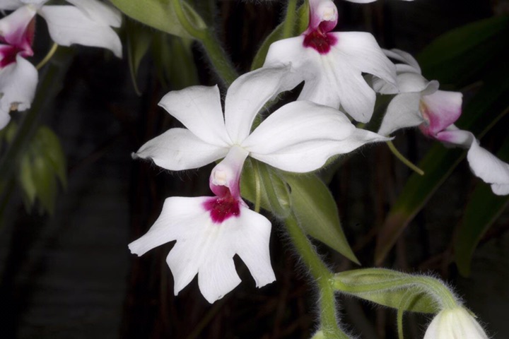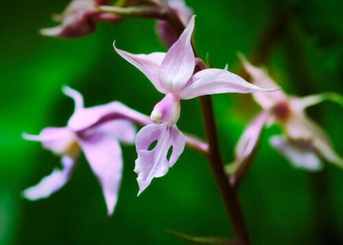 虾脊兰(学名:Calanthe discolor Lindl.):根状茎不甚明显。假鳞茎粗短,近圆锥形,粗约1厘米,具3-4枚鞘和3枚叶。叶在花期全部未展开,倒卵状长圆形至椭圆状长圆形,背面密被短毛。花葶从假茎上端的叶间抽出,密被短毛,总状花序长6-8厘米,疏生约10朵花;萼片和花瓣褐紫色;唇瓣白色,轮廓为扇形,与整个蕊柱翅合生,约等长于萼片,3深裂;。花期4-5月。