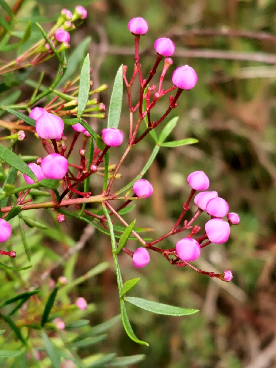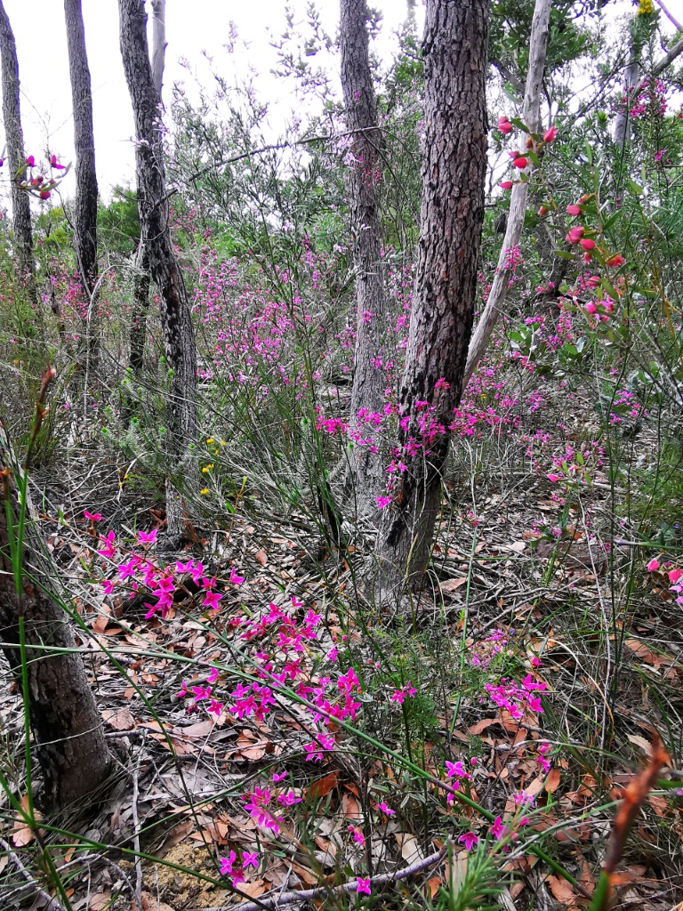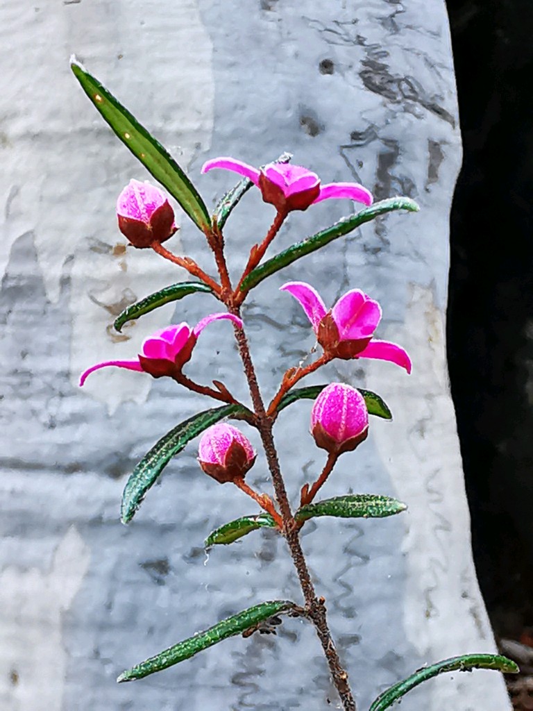 在这冬末春初时期,来次丛林行,进入桉树林,就可以见到漂亮的野生石南香,花色多为粉红,四片花瓣