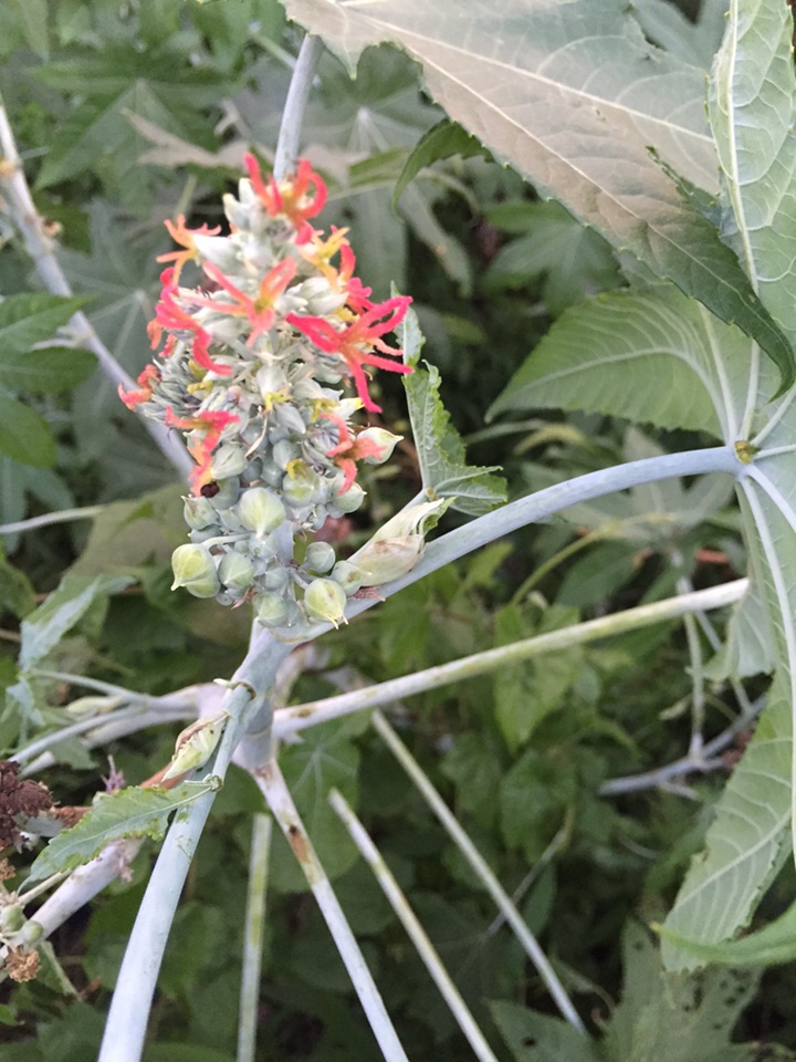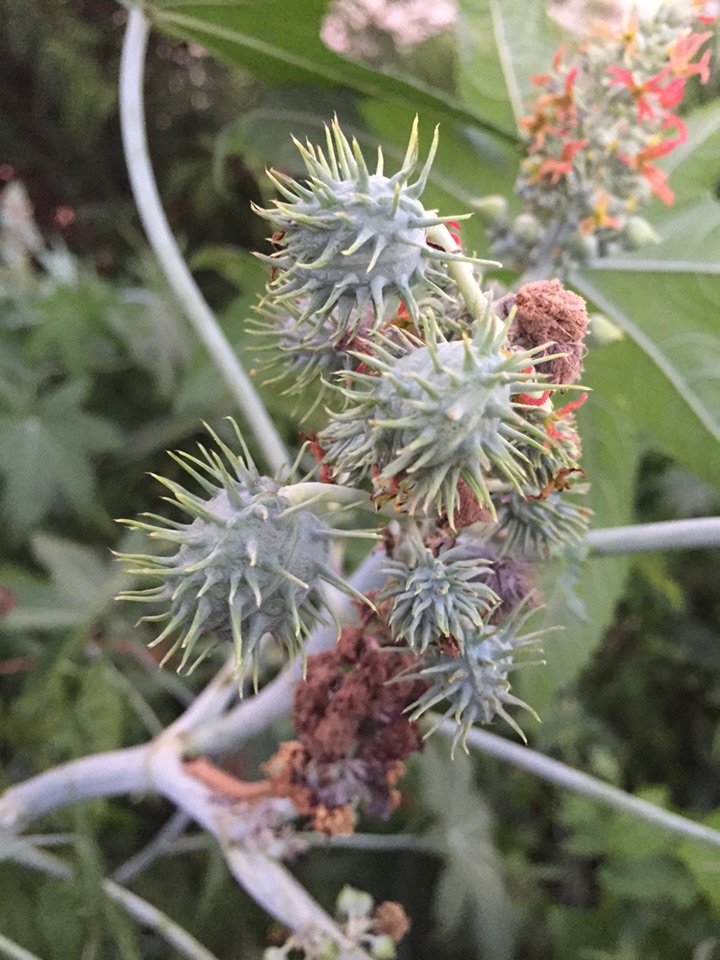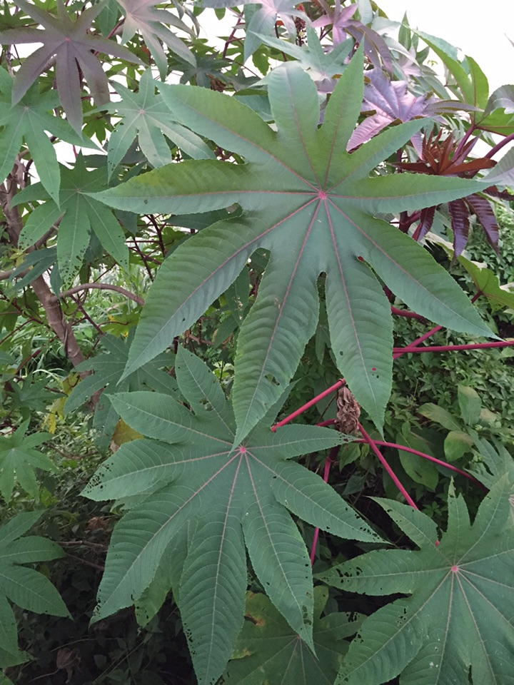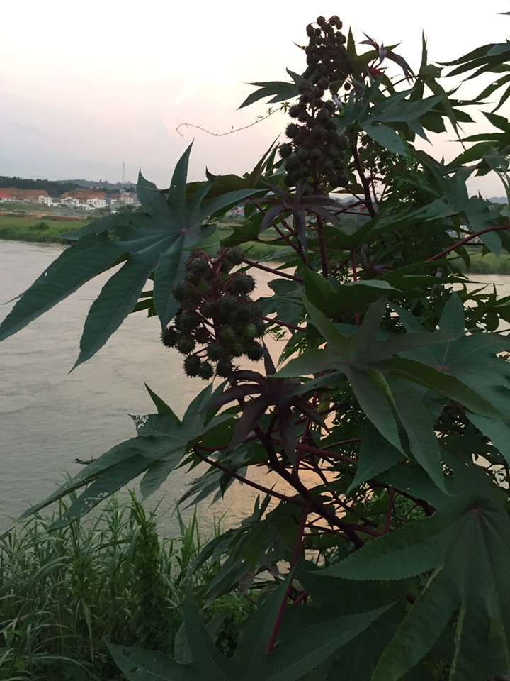 蓖麻。是有毒植物,也是庄稼。汁液容易过敏等。