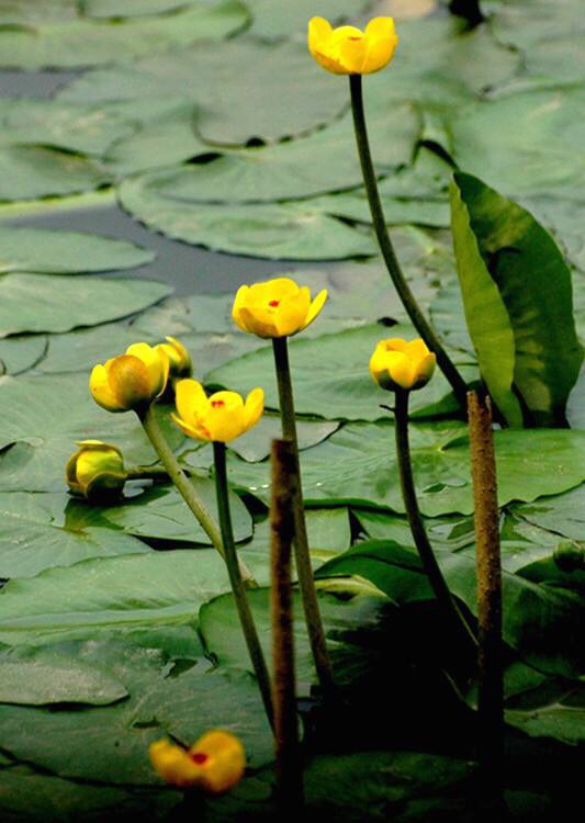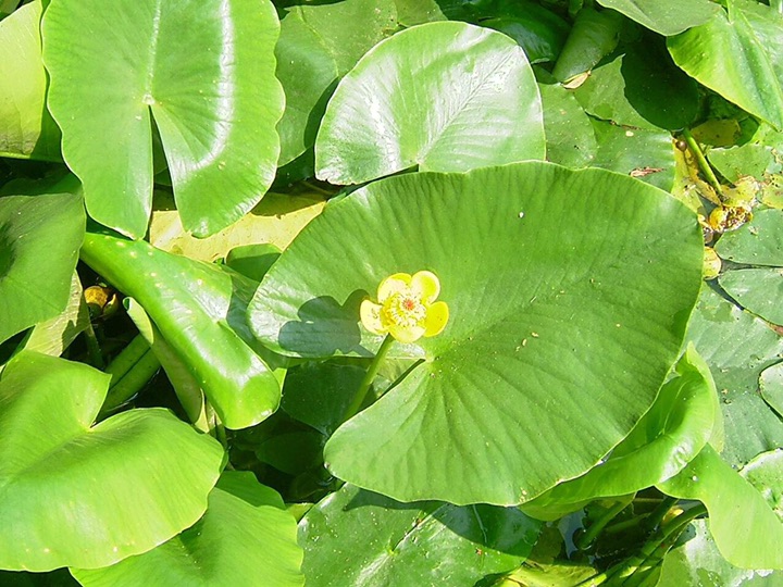 萍蓬草(学名:Nuphar pumilum (Hoffm.) DC.)是睡莲科萍蓬草属植物,多年水生草本;根状茎直径2-3厘米。叶纸质,宽卵形或卵形,少数椭圆形,长6-17厘米,宽6-12厘米。花直径3-4厘米。浆果卵形,长约3厘米;种子矩圆形,长5毫米,褐色。花期5-7月,果期7-9月。[1]分布于中国、俄罗斯、日本、欧洲北部及中部;在中国分布于黑龙江、吉林、河北、江苏、浙江、江西、福建和广东。生长在湖沼中。