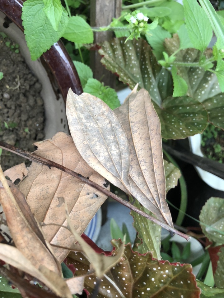 我出差半个月后回来,花盆里草都长大了!看看这一盆,把草拔光!剩下什么?我种的肉桂都干死了呀!
