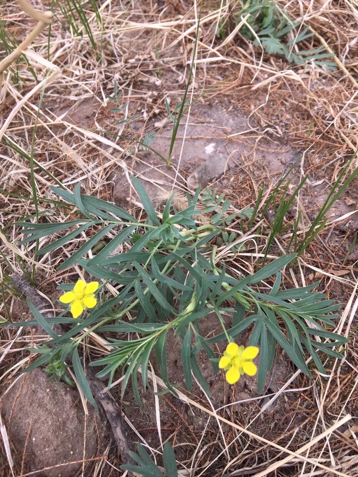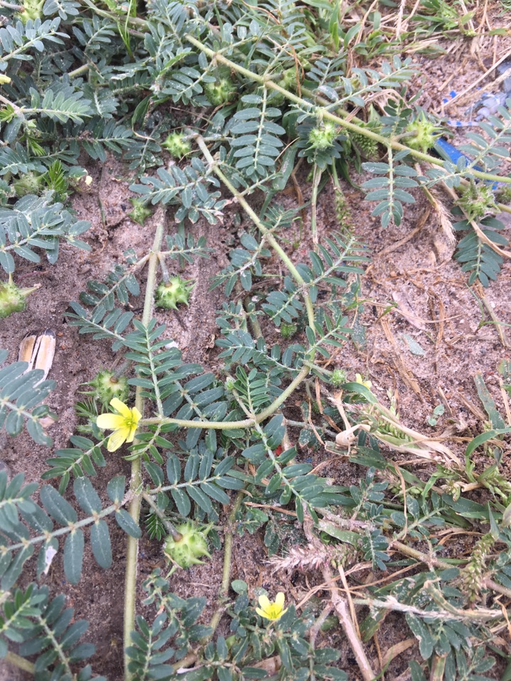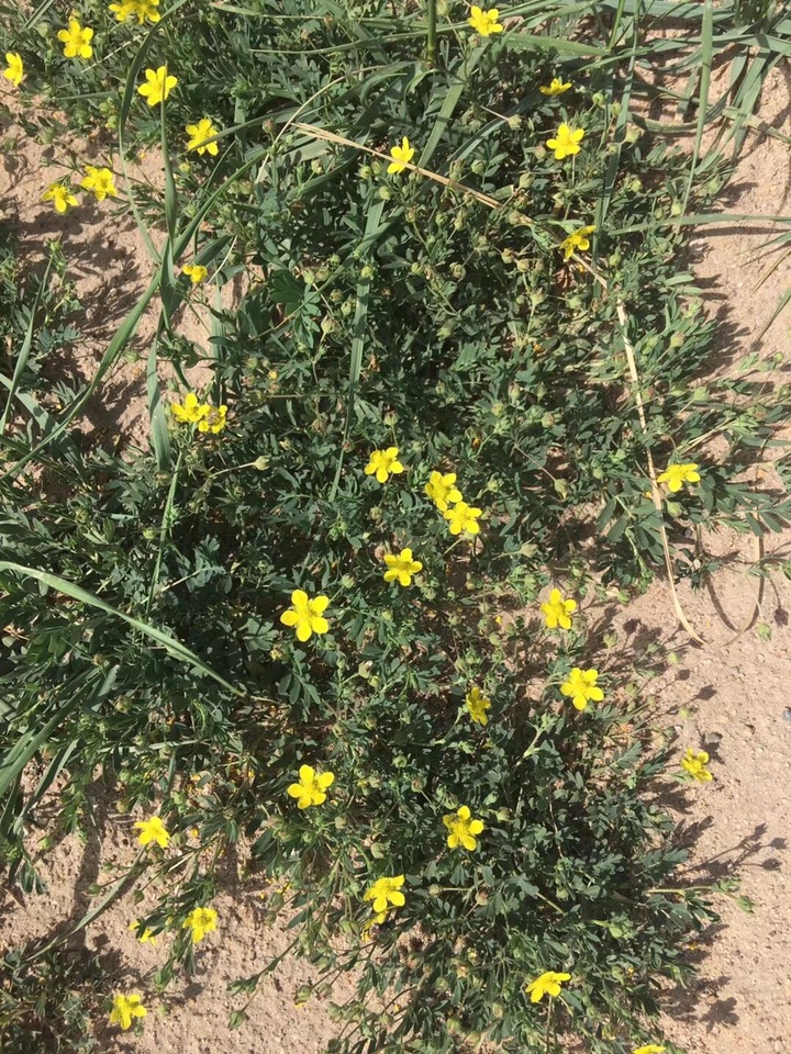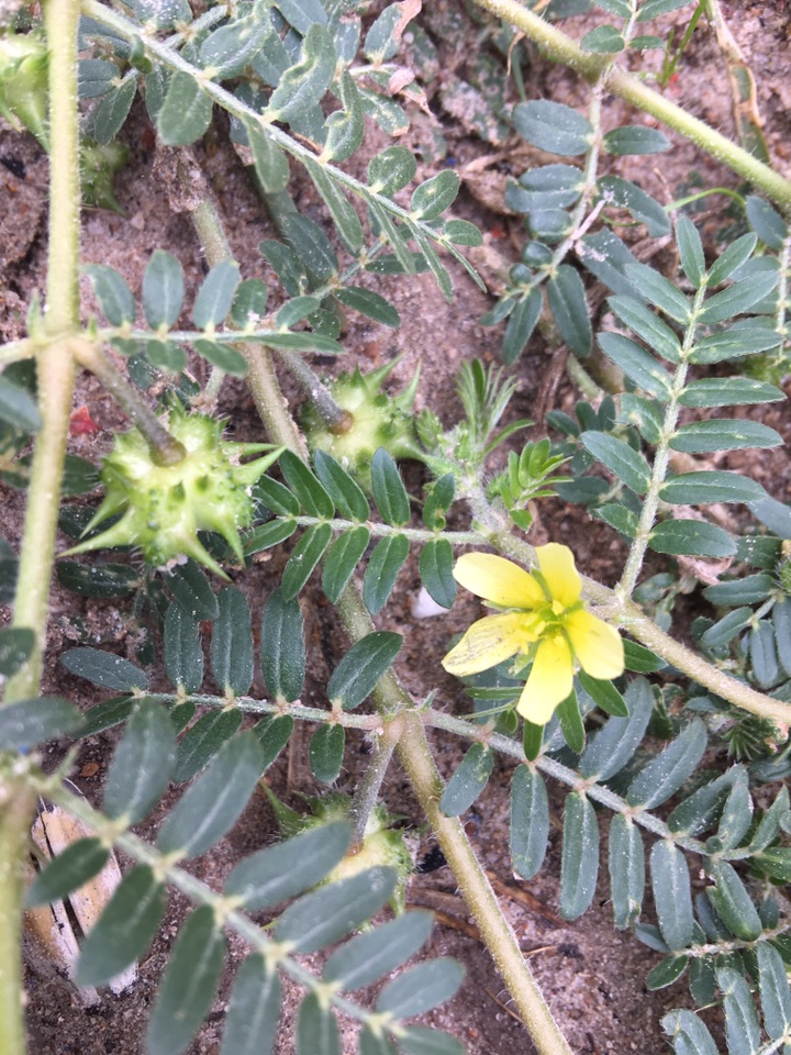 朝天萎陵菜是蔷薇科萎陵菜属植物,可清热解毒、凉血止痢等。蒺藜是蒺藜科蒺藜属植物,它能平肝解郁、活血祛风、明目止痒等。但是,二者都是羽状复叶,小黄花也很相似,在结果之前极难区分,形色也傻傻分不清。随着时间的推移,朝天萎陵菜的枝叶逐渐离开地皮,枝头花谢后留下一些种包。蒺藜则一直匍匐前进,花谢后留下一个个扎手的青绿色蒺藜果,让人一下就想到古战场上使用的那种铁蒺藜,再也不干去碰它。
