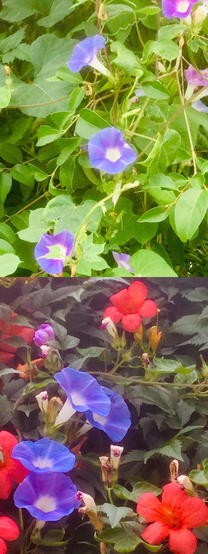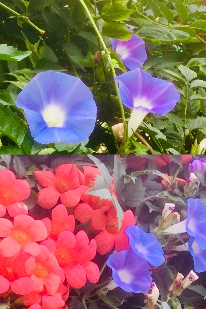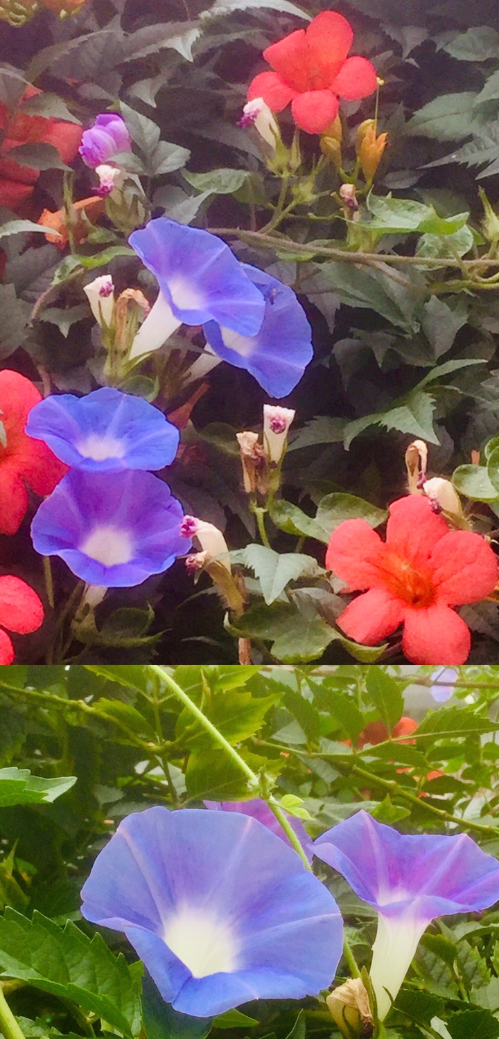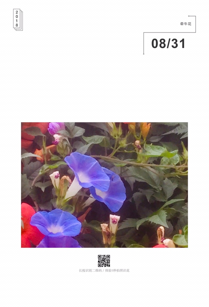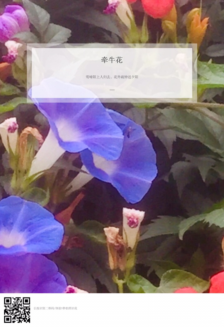 牵牛花是路边最常见的一种花,她的外形酷似喇叭,颜色很丰富,有蓝、绯红、桃红、紫等,而且还有混色的,花瓣边缘的变化较多,是极具观赏性的花卉。小时候最喜欢摘一朵牵牛花拿在手里玩,牵牛花和其它花不同,它的香气不是很大,只有一股淡淡的清香。而且现在夏天真实牵牛花的盛花期,可以说是名副其实的夏天“开花机器”
