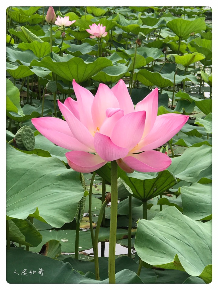 辽阳柳濠河的荷韵味正足,含苞待放的骨朵儿、风华正茂的花、亭亭舒展的叶、耐人寻味的蓬。