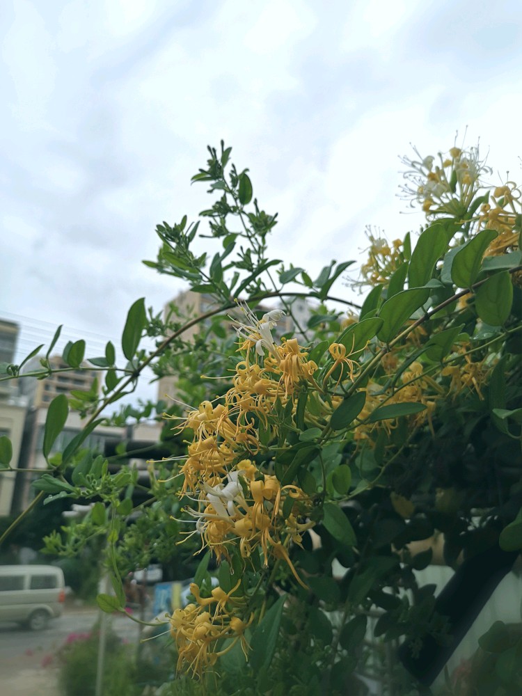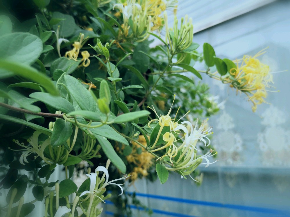 妈妈家的金银花,开得灿烂的,之前就开了两小撮,让我摘下了。