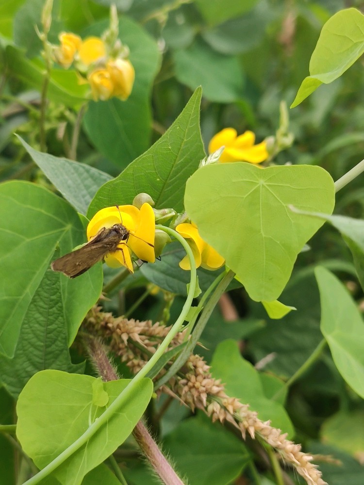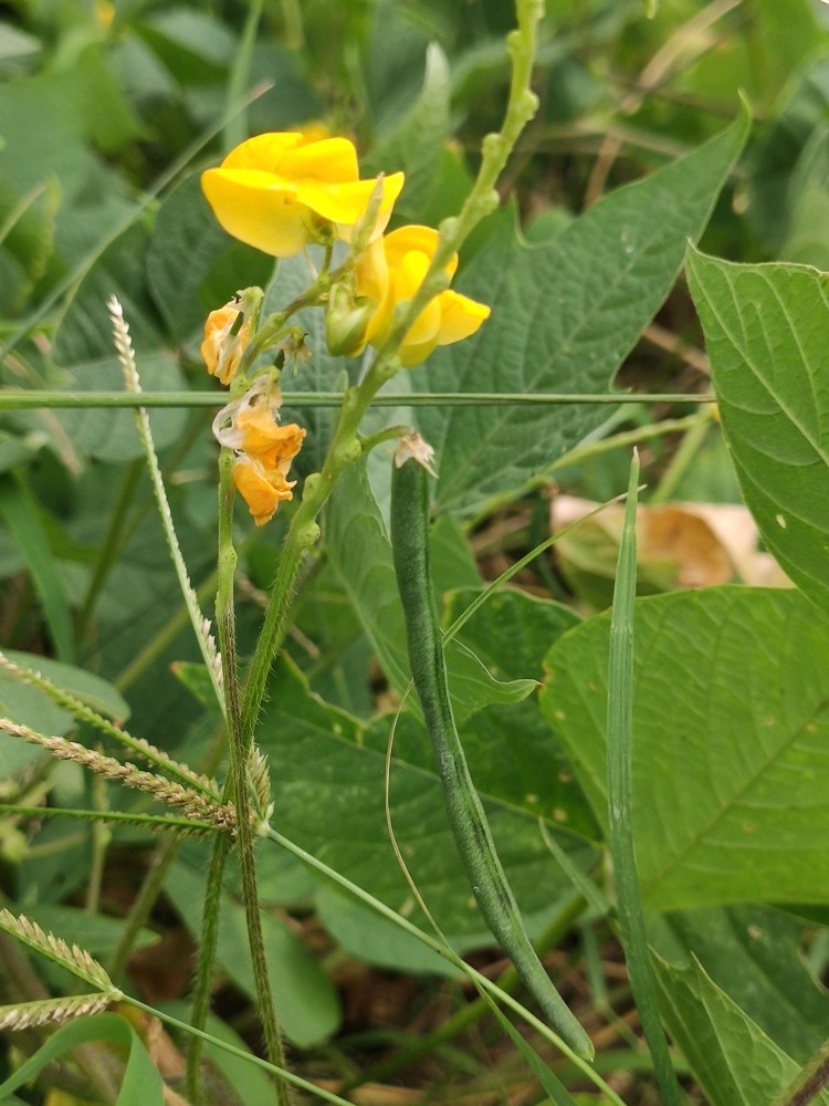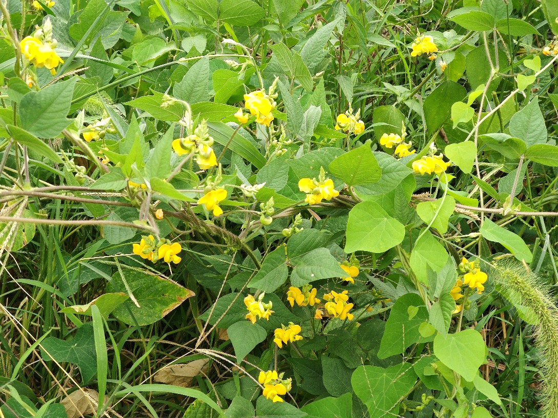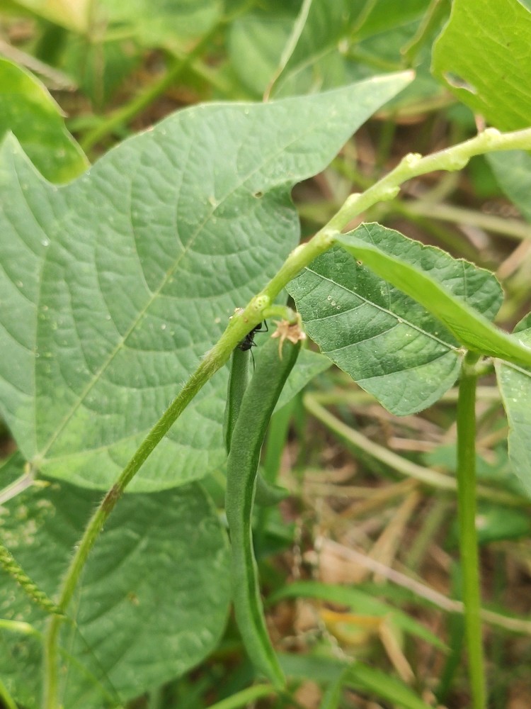 小豆子开了很多花,找了好几圈就发现了三枚小豆荚,老爸说这个豆豆快到成熟季时得边结边捡,不然熟透的豆豆全都自己裂开散落在地里了