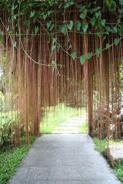 锦屏藤(学名:Cissus sicyoides L.)是葡萄科,白粉藤属多年生常绿草质藤蔓植物,具卷须,与叶对生;攀援茎,气生根线形,着生于茎节处,短截的气生根可分生多条侧根,下垂生长。初生气根紫红色,质地光滑脆嫩,老熟气根黄绿色,柔韧,长度可达4米;单叶片互生,叶色深绿,阔卵形,叶尖渐尖,叶基心形,叶缘微具钝齿,叶柄绿色,叶脉为羽状脉,叶面平展;多歧聚伞花序,花小,呈白绿色,两性花。花冠十字形,花盘杯状,萼片基部合生,雄蕊与花瓣对生,果形圆形,果顶有针状突出,果肉为浆果,单核。