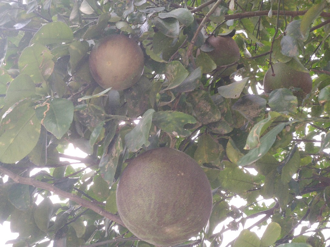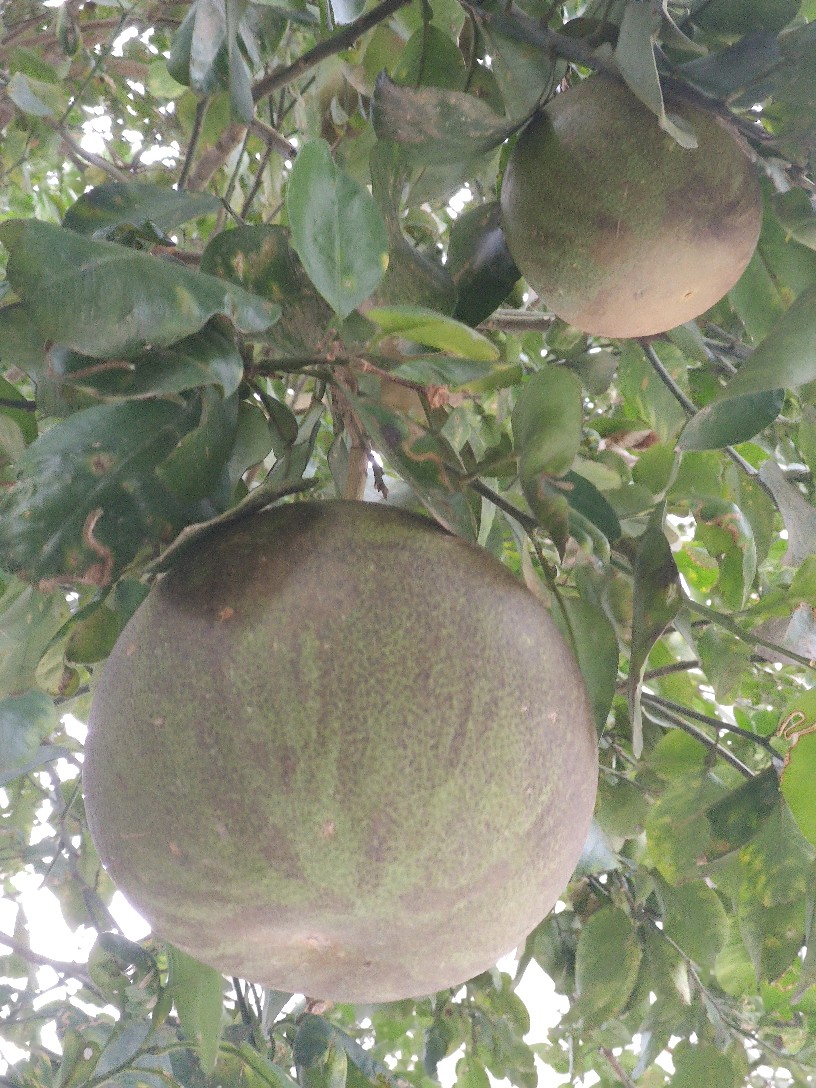 吃完那柚子忍不住去看了看自家树上的柚子,挂果很多可外表实在是太丑了