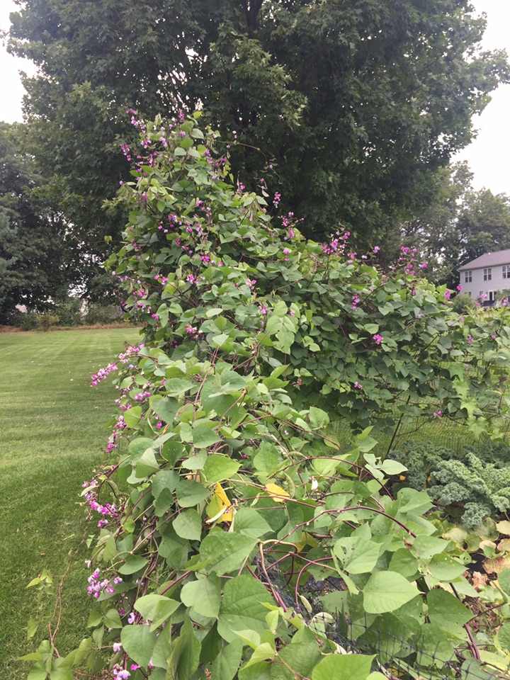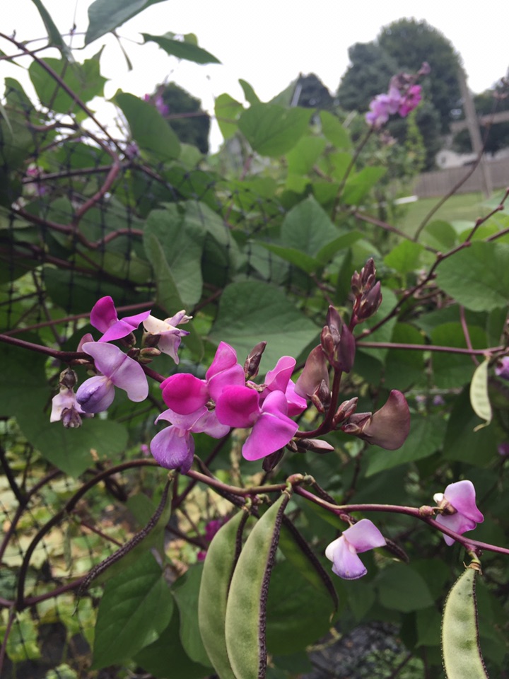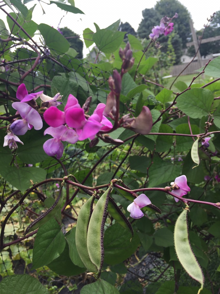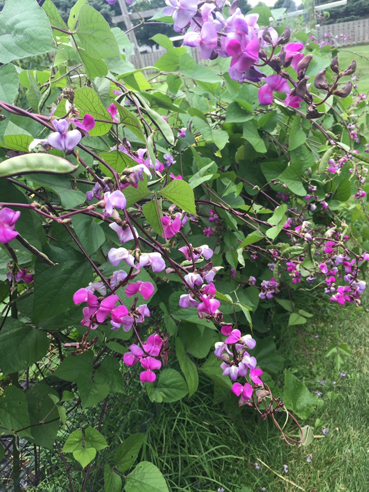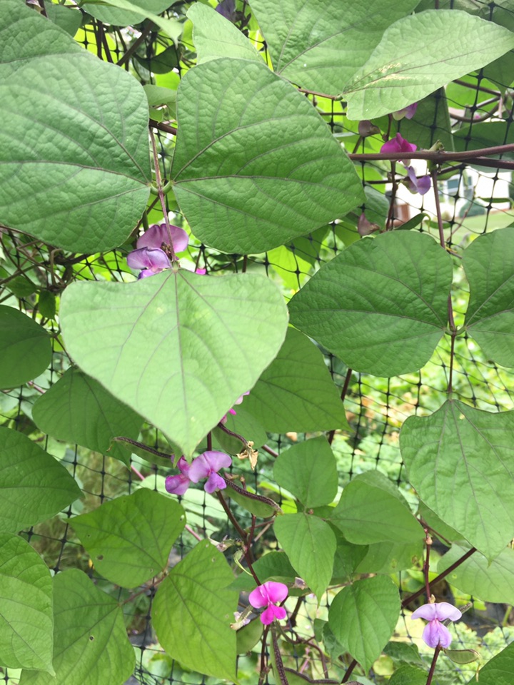 路过朋友家 参观了他们的菜园子 喜欢这个扁豆 既有漂亮的紫色花可赏 还结那么多的扁豆 真好!明年问他们要些种子 也种种扁豆😜😊