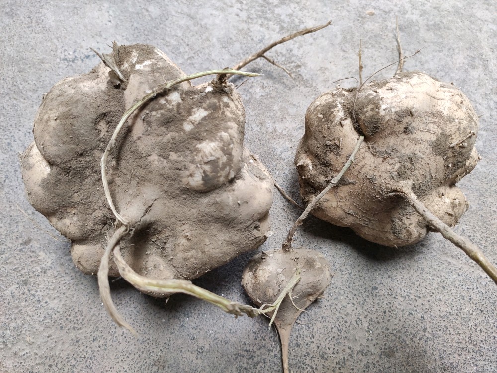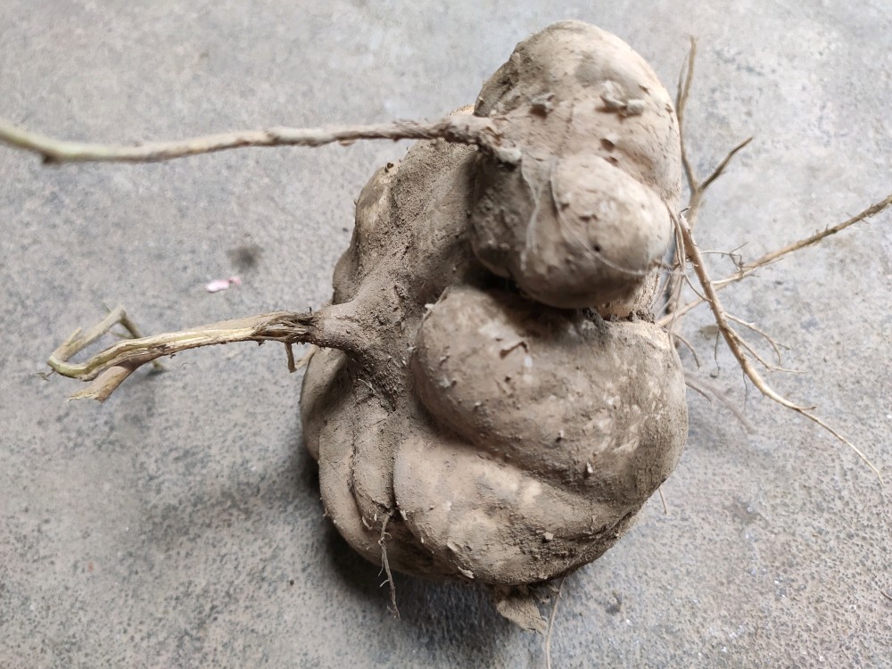 后来琢磨估计是那小的挨太近的原因,索性把小的先给挖出来了,在用竹子往小凉薯的位置撬,哈!一会儿功夫就拔出来了!