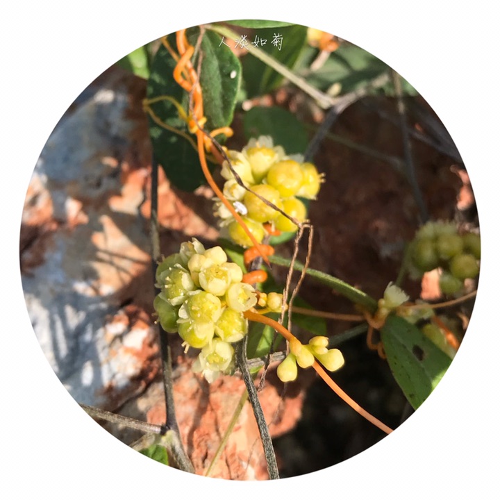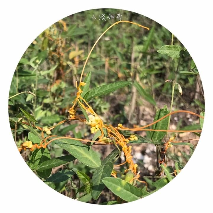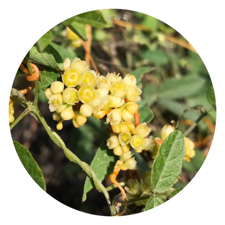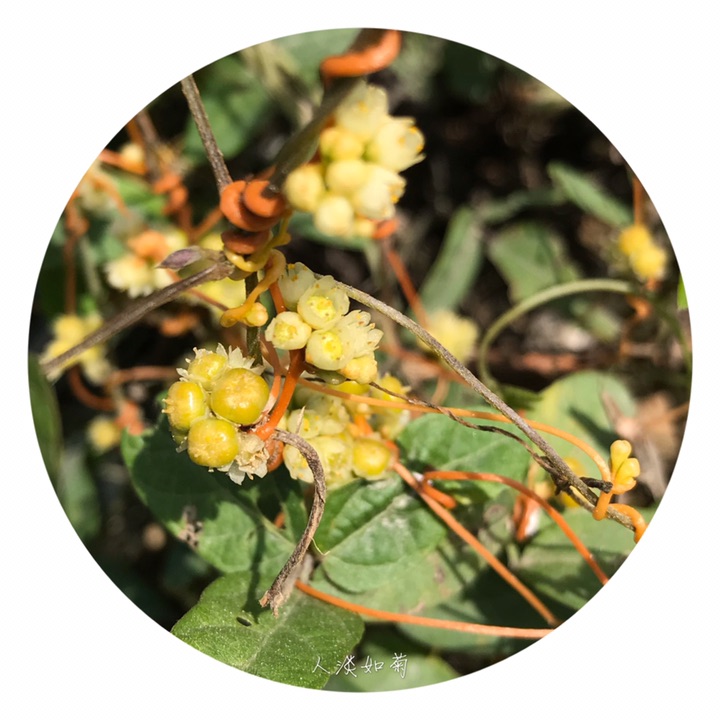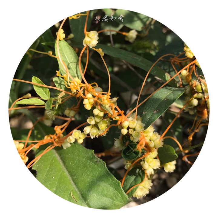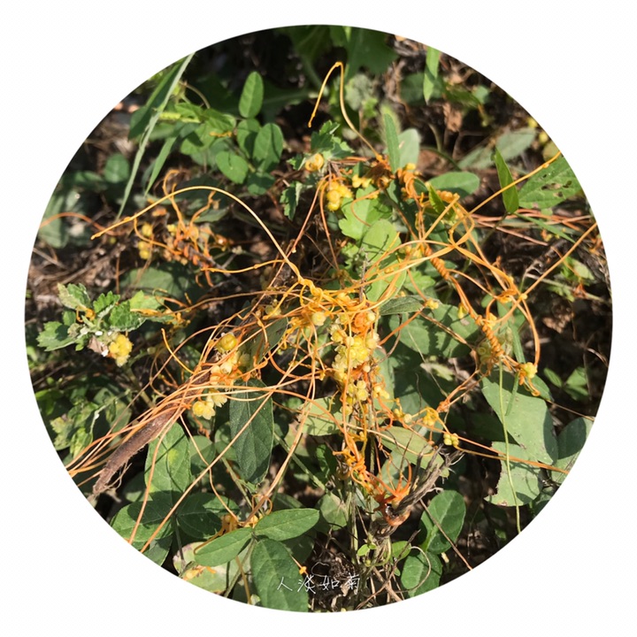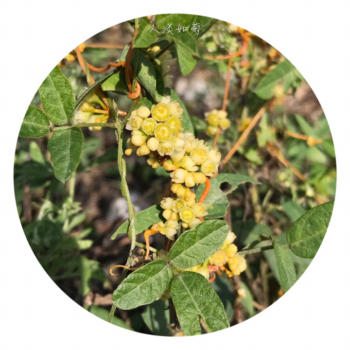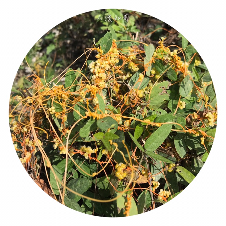 菟丝花(拉丁学名Cuscuta chinensis Lam.)别称金灯藤,旋花科菟丝子属一年生寄生缠绕草本。菟丝花攀附寄生的特性,在生物学上却赋予它许多可怕的绰号:“魔王的丝线”“致命绞索”“植物吸血鬼”等等。菟丝的茎看似柔软细嫩,却生长迅速,而且茎上长有一种特殊的吸器,可以打开寄主植物的茎干,从寄主植物的维管束中汲取营养物质,因此寄主植物常常会逐渐枯萎而被绞杀。